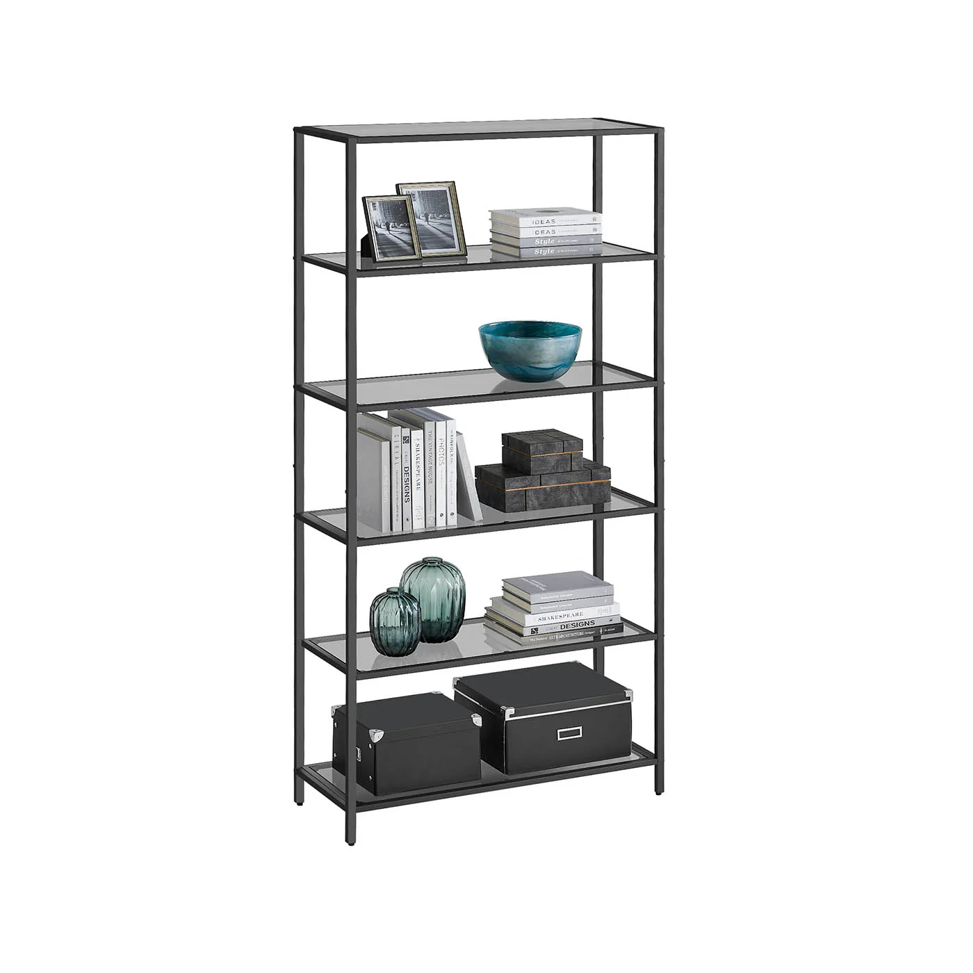 VASAGLE Estantería de Cristal de 6 Niveles, Librería, Expositor, Cristal Templado, Fácil de Montar, para Baño, Salón, Dormitorio, Oficina