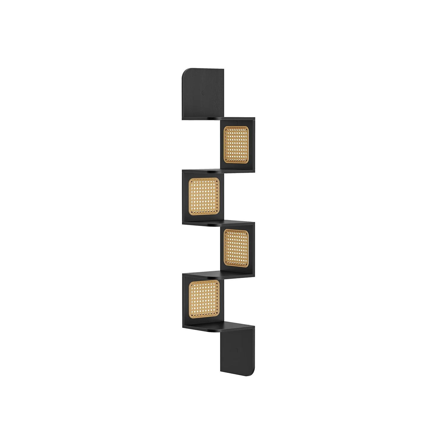 VASAGLE Estantería de Esquina, Estantería Flotante de 5 Niveles, Estantería Zigzag Montada en la Pared, Laterales de Ratán de PVC, Cocina, Dormitorio, Salón, Estilo Boho