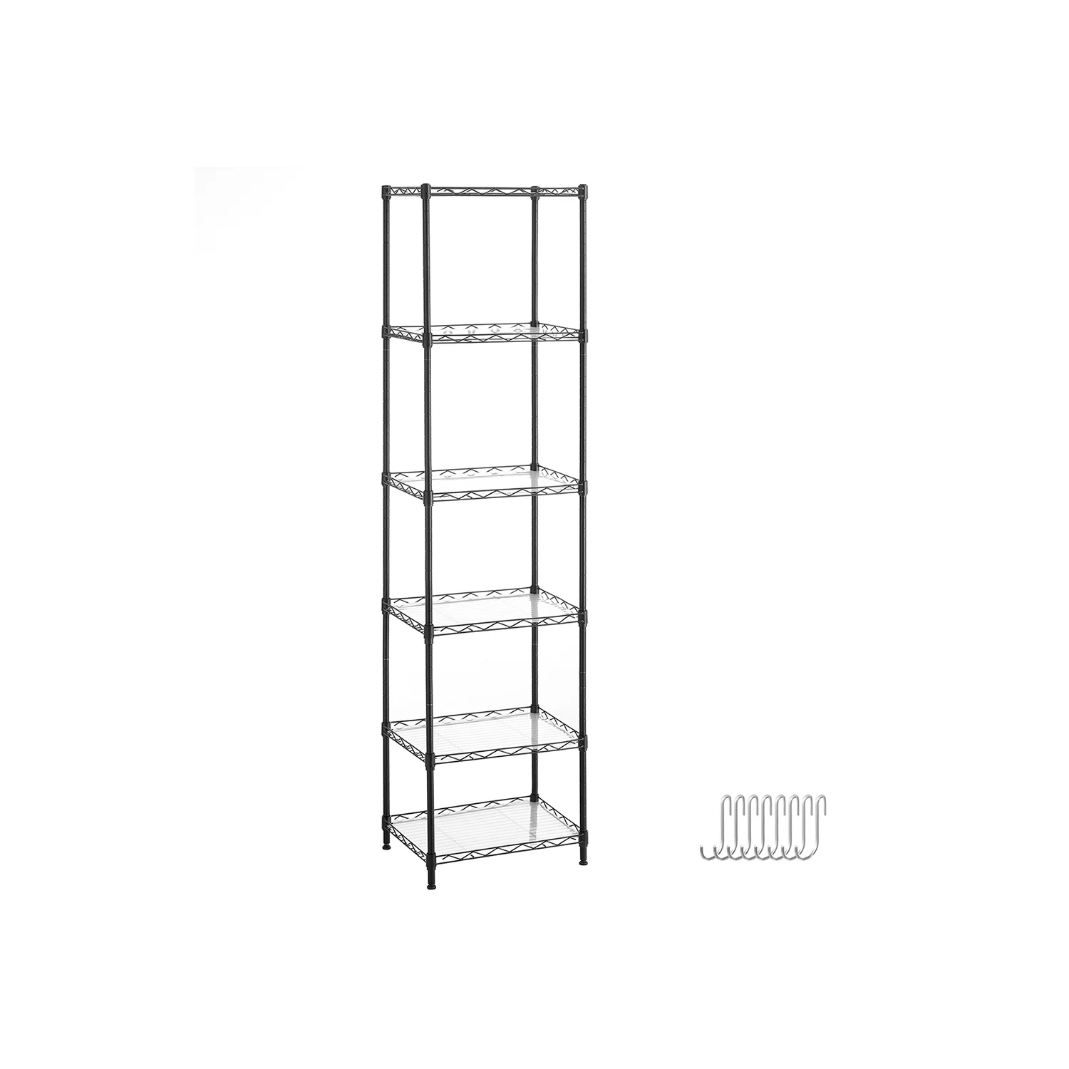 SONGMICS Estantería Metálica de 6 Niveles, Estanteía de Malla con Estantes Ajustables, Paneles de PP, 8 Ganchos, Carga Máxima de 120 kg, para Salón, Garaje
