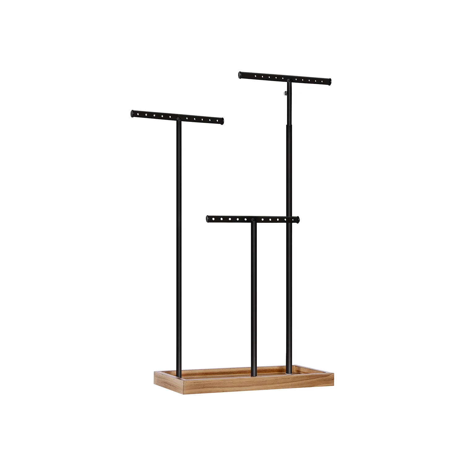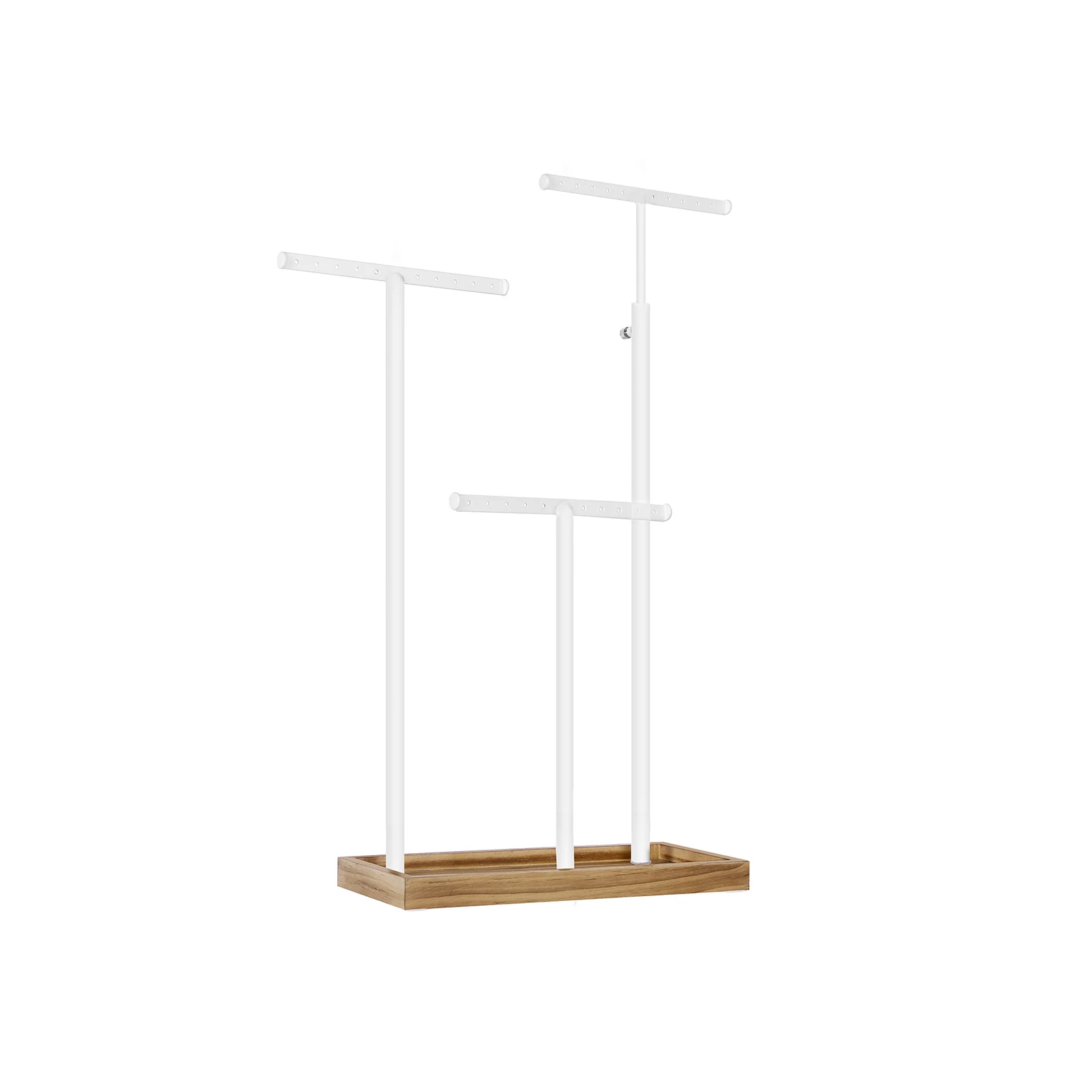 SONGMICS 2-en-1 Soporte para Joyas, Árbol de Joyas con 3 Barras de Metal en Forma de T con Agujeros y Bandeja, Ajustable para Collares, Pendientes, Anillos, Marrón Rústico y Blanco JJS016W01