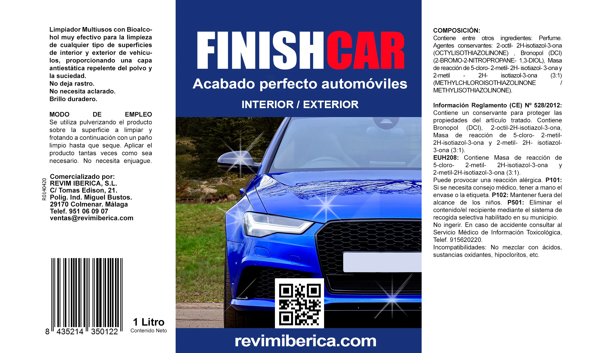 Limpiador Multiusos con Bioalcohol muy efectivo para la limpieza de cualquier tipo de superficies de interior y exterior de vehículos, proporcionando una capa antiestática repelente del polvo y la suciedad.