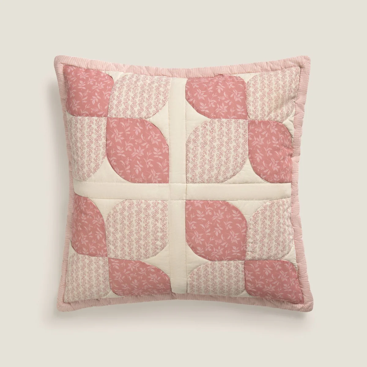 Funda de cuadrante acolchada de algodón con diseño patchwork en tonos rosas. Con cierre de cremallera. Relleno opcional: el relleno se vende por separado.