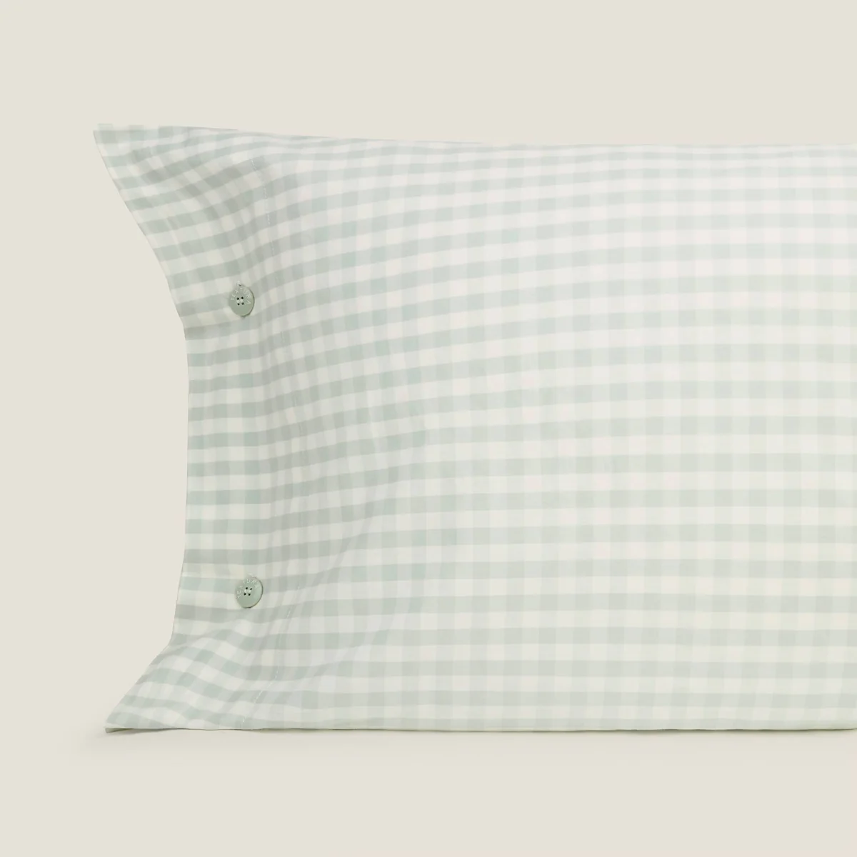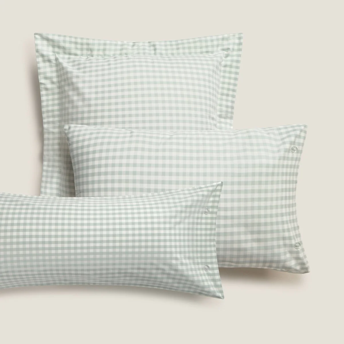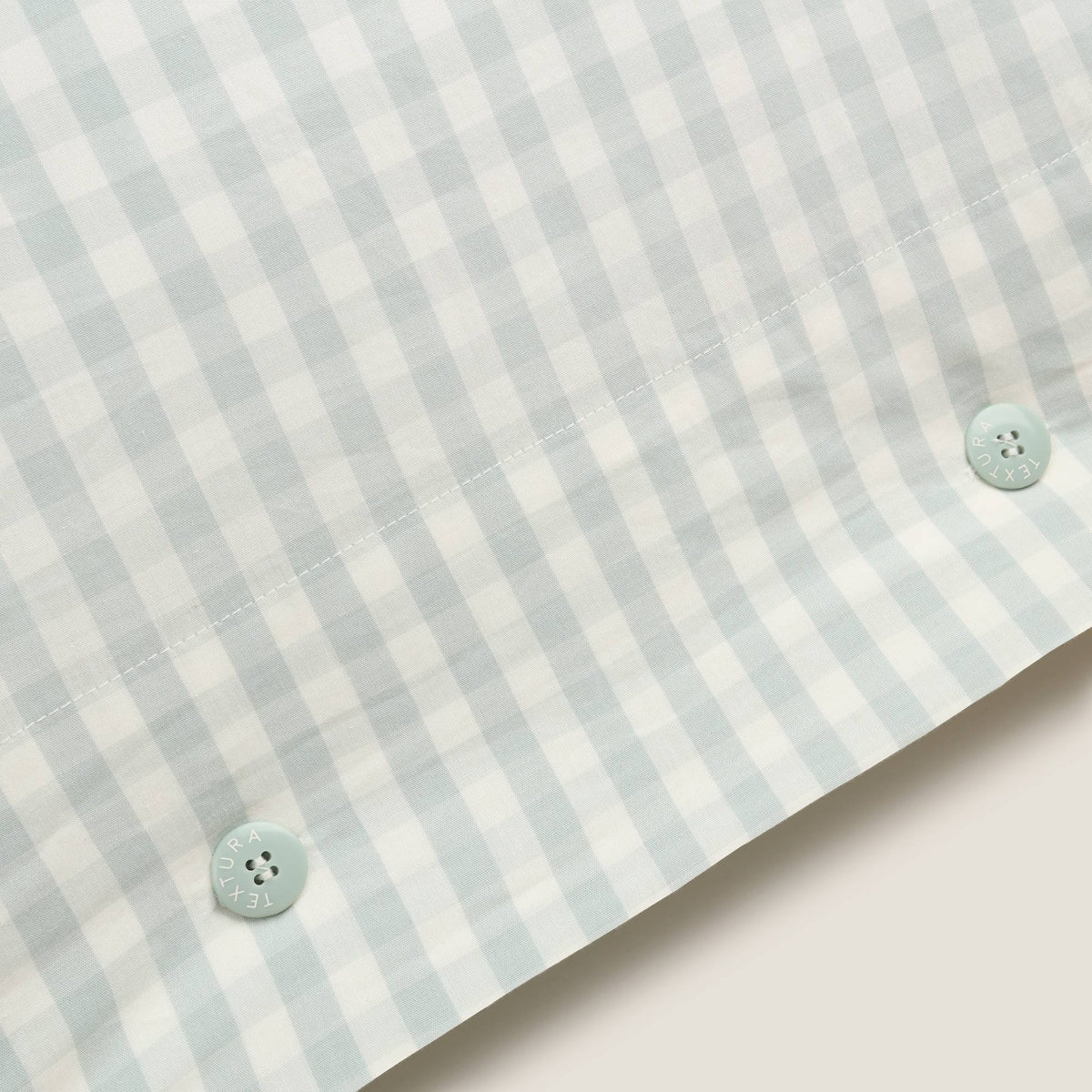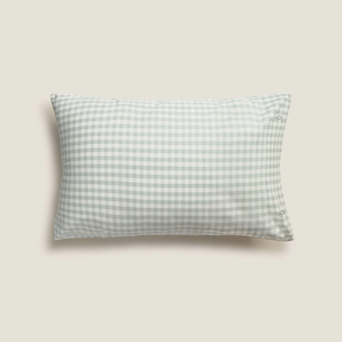 Funda de almohada de algodón de 180 hilos con cuadros vichy en azul agua. Las medidas 50×85 cm y 65×65 cm se venden en set de 2 unidades.