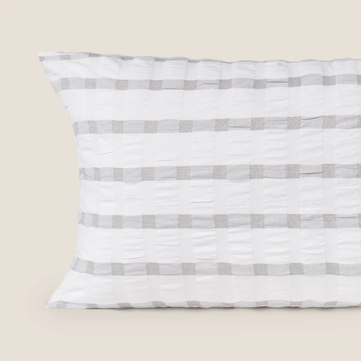 Funda de almohada de algodón de 180 hilos tejido a rayas efecto panal. Se cierra con solapa. La medida 50×75 cm incluye dos unidades.