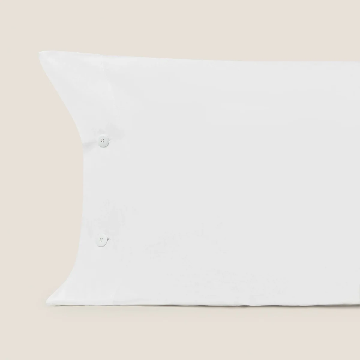 Funda de almohada de algodón percal de 180 hilos en color liso. Tratamiento fácil planchado y tejido suave y resistente. Se cierra con botones. Confeccionada en Portugal. La medida 50×85 cm incluye dos unidades.