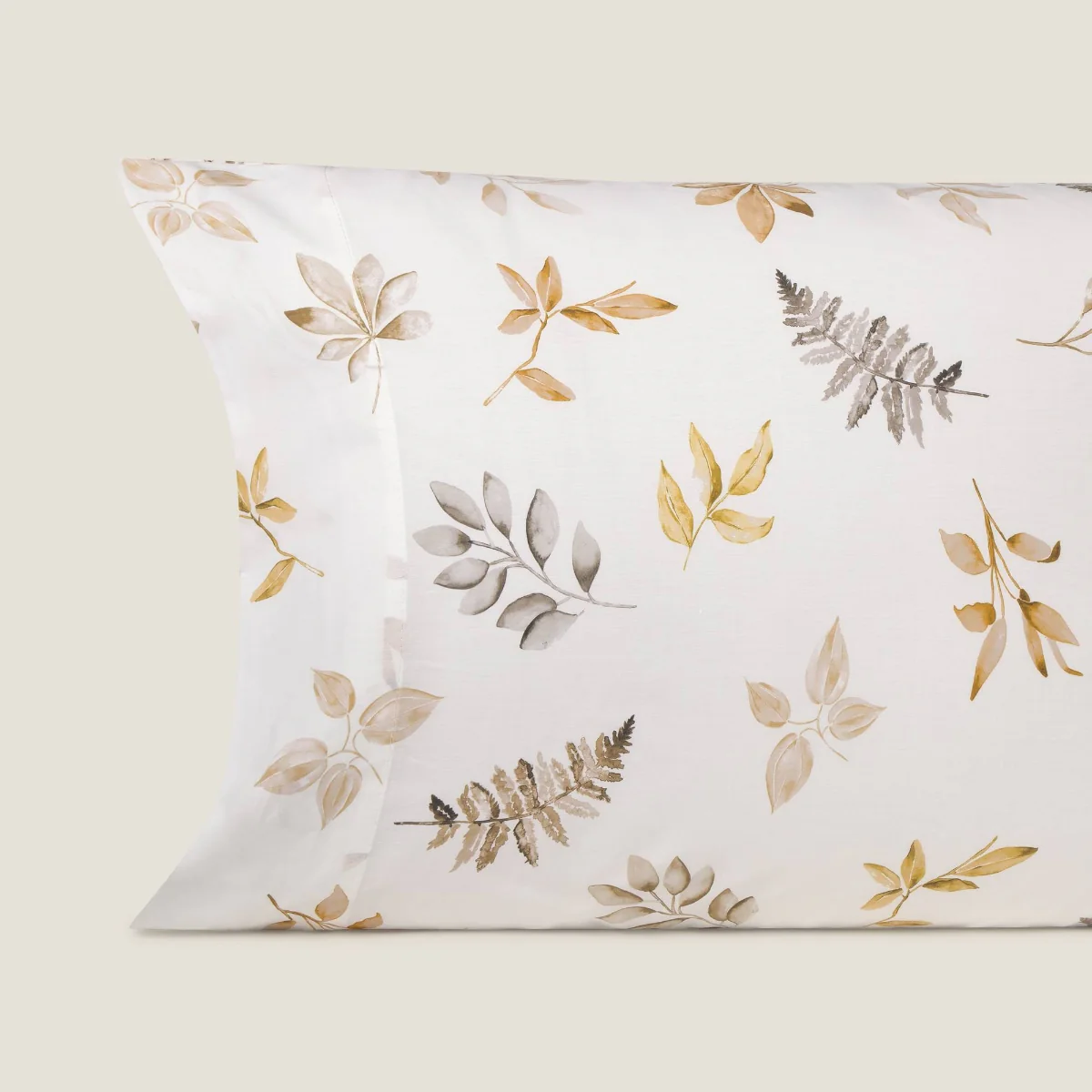 Funda de almohada algodón percal 180 hilos hojas Folo