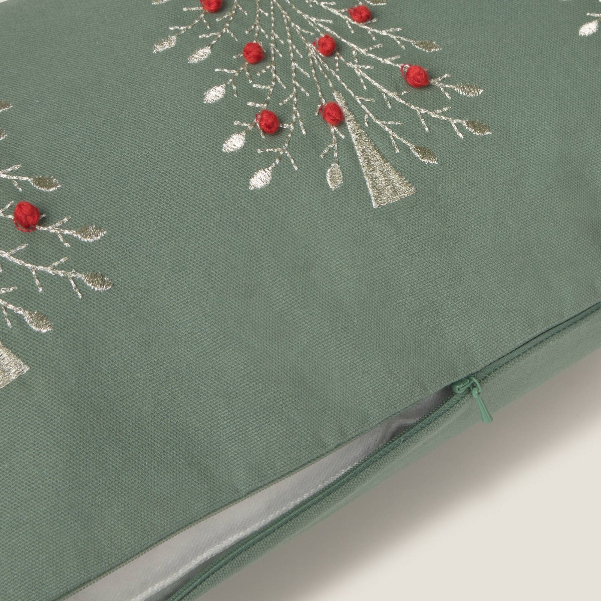 Funda de cojín bordado con abetos Tres