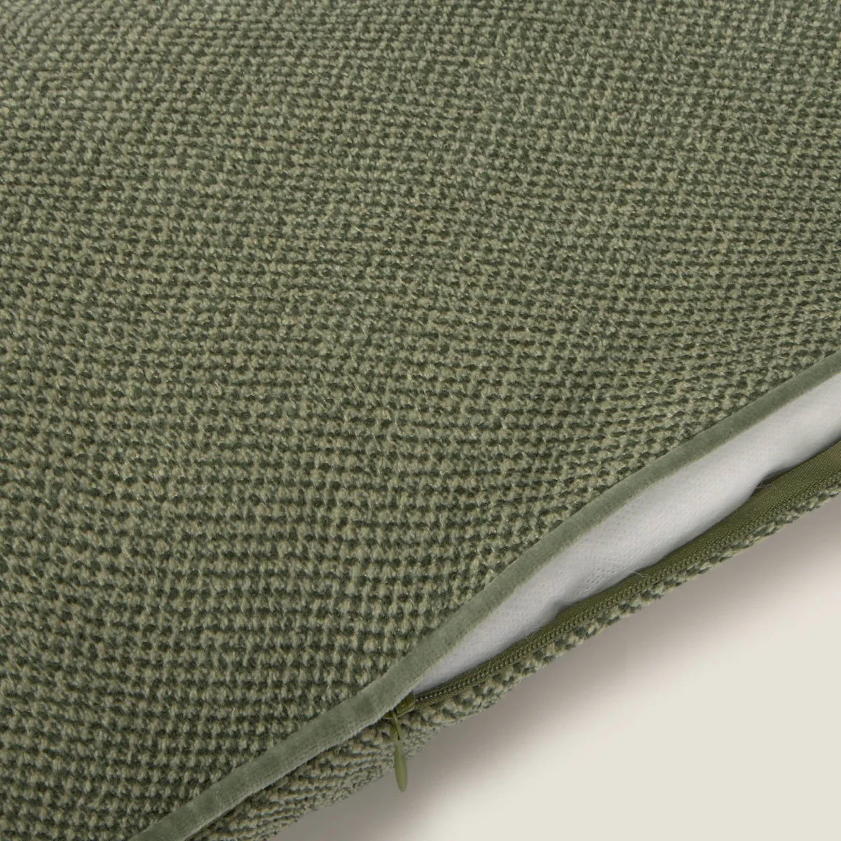 Funda de cojín con estructura visual y vivo decorativo en el contorno. Cierre con cremallera invisible. Medida: 30×50 cm. Relleno opcional: El relleno se vende por separado.