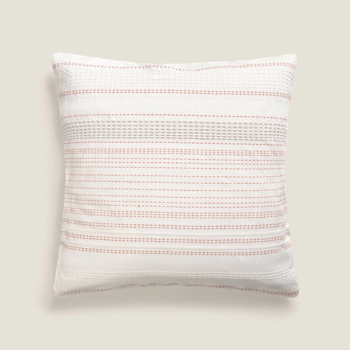 Funda de cuadrante de algodón con tejido texturizado de rayas teñidas en hilo. Su confección con 180 hilos garantiza suavidad y durabilidad. Relleno opcional: El relleno se vende por separado.