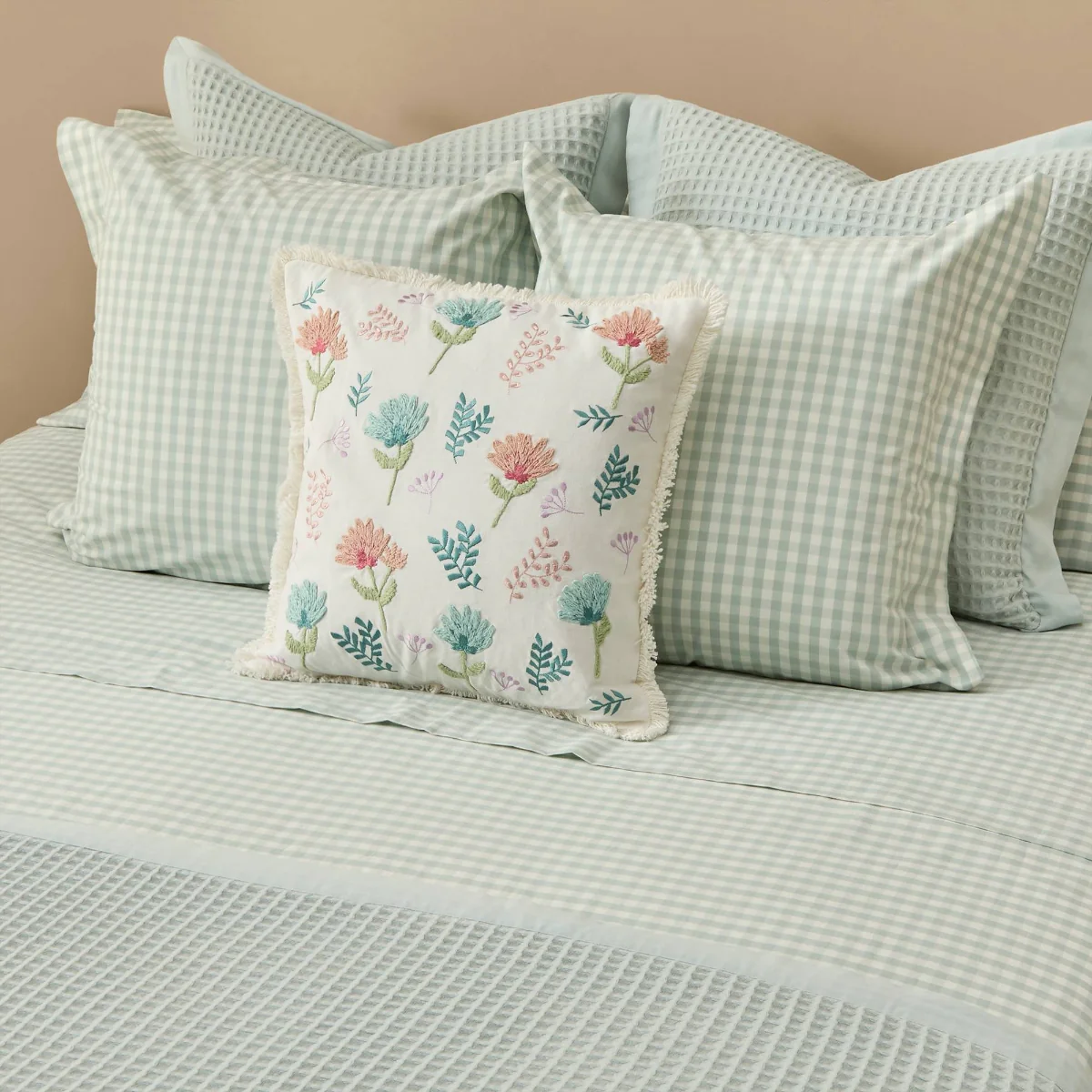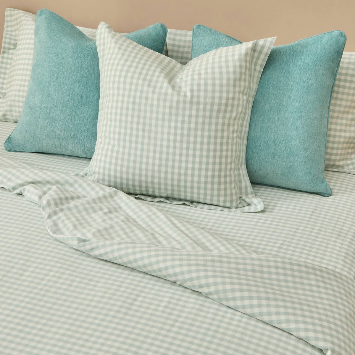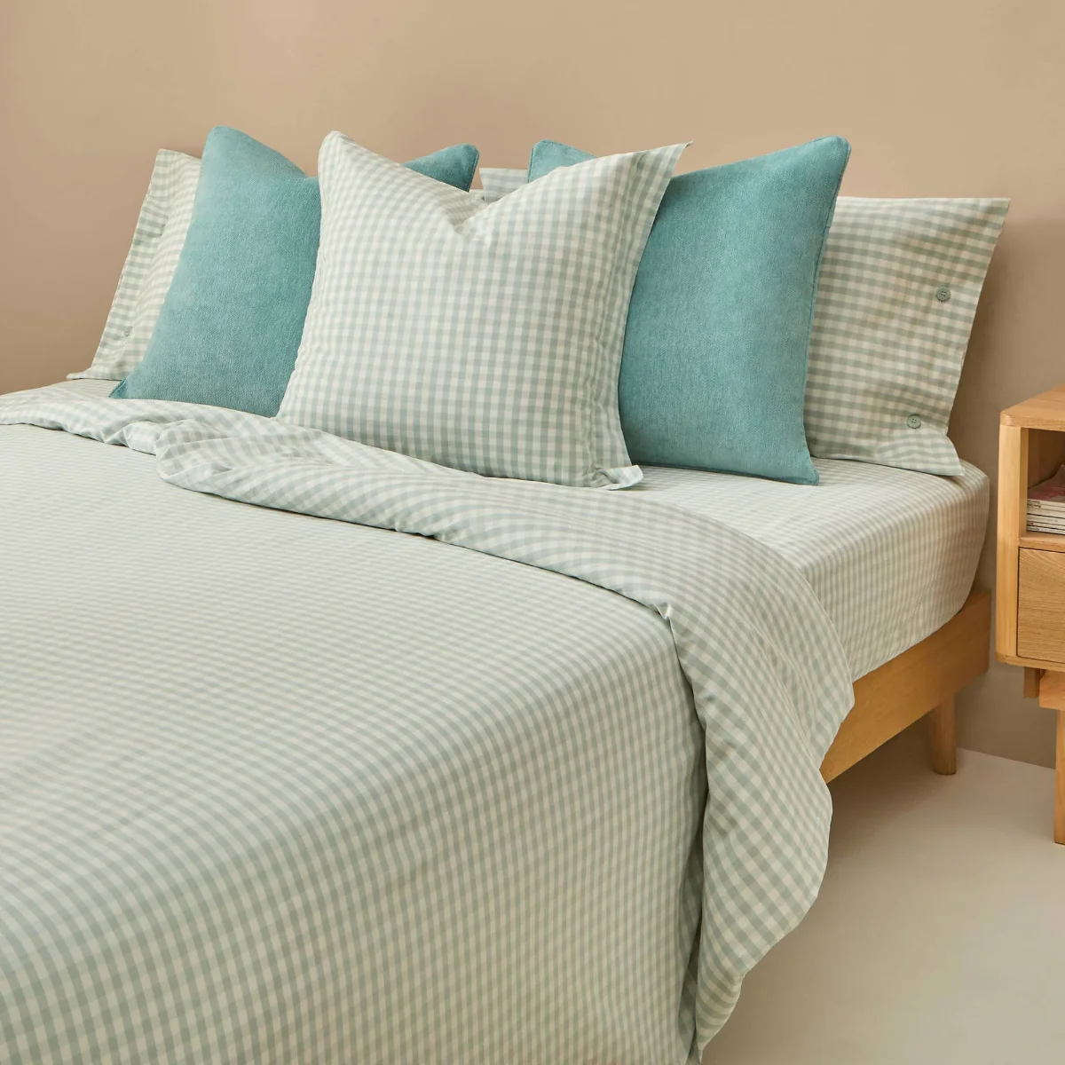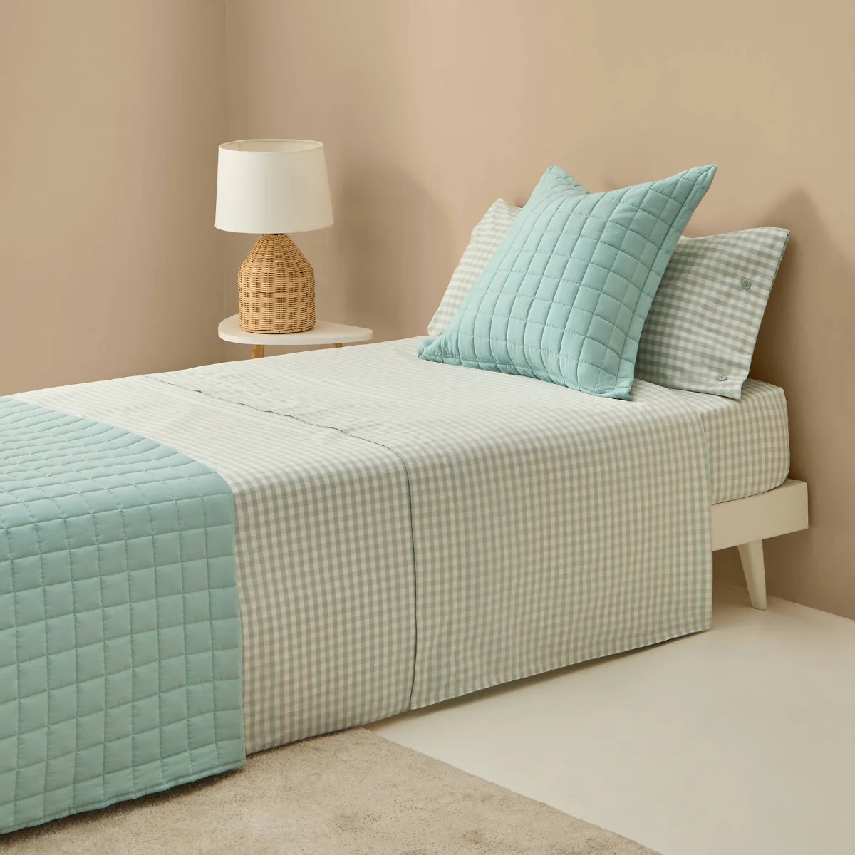 Funda nórdica de algodón de 180 hilos con cuadros vichy en azul agua marina. Con un largo de 260 cm y abierta por la parte inferior. Las fundas de almohada se venden por separado.