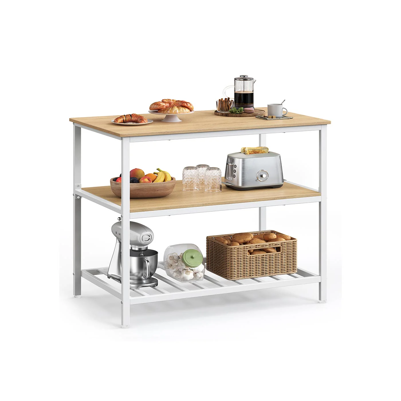 VASAGLE Isla de Cocina con Encimera Grande, Estantería de Cocina de 3 Niveles, Marco de Acero, 60 x 100 x 90 cm, Estilo Industrial, Fácil de Montar
