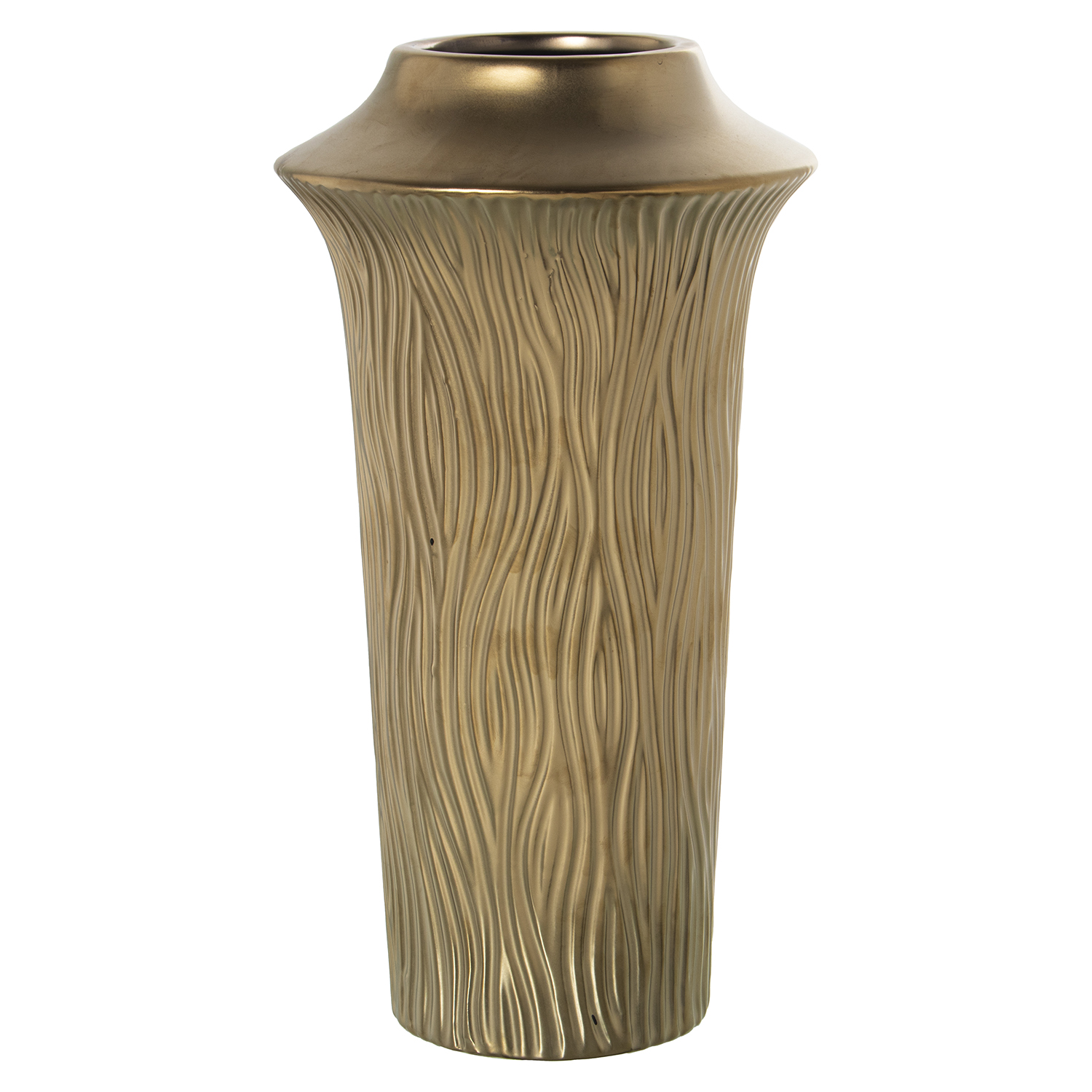 Jarrón cerámico dorado diseño surcos.
