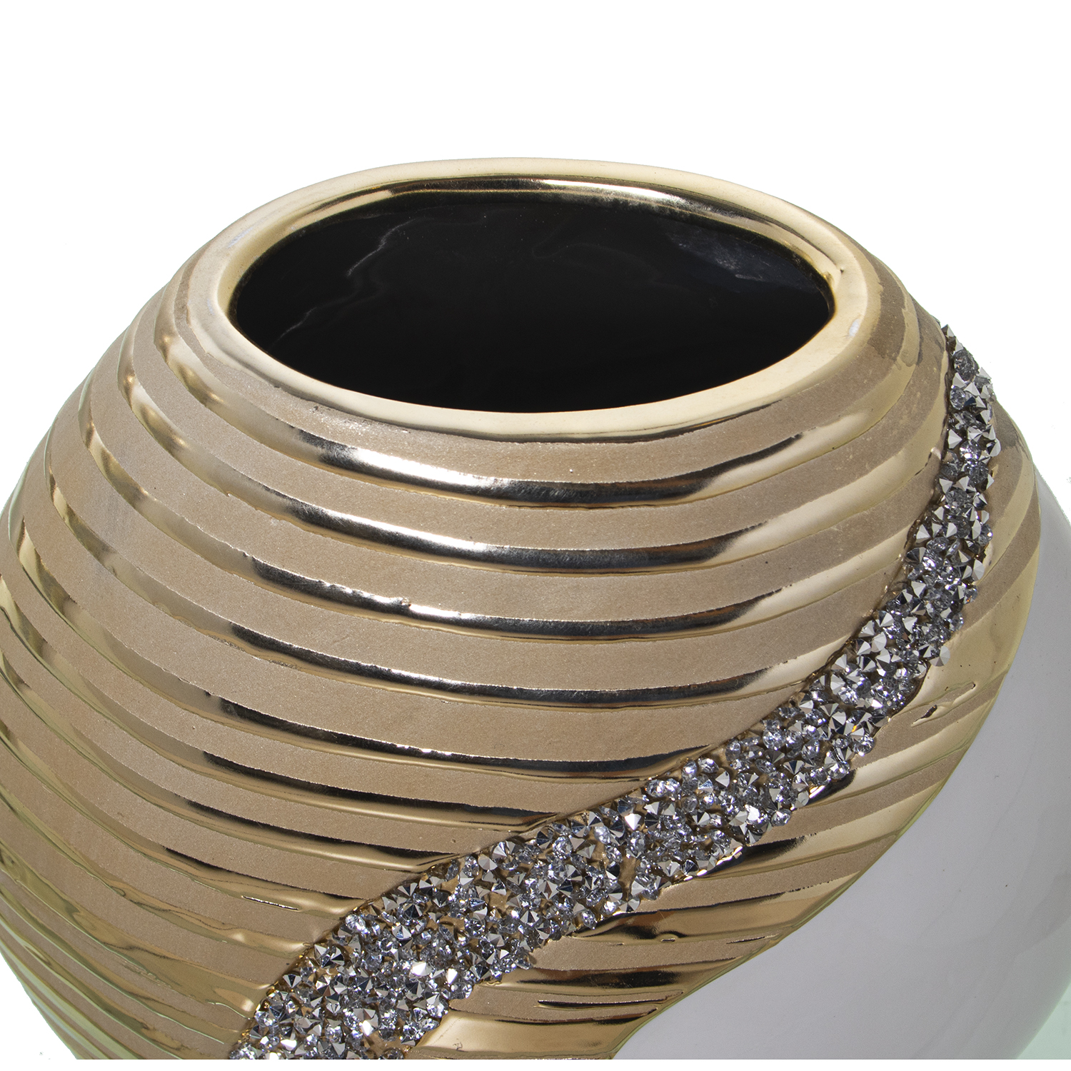 Jarrón de cerámica blanco, champagne y brillos 20 cm