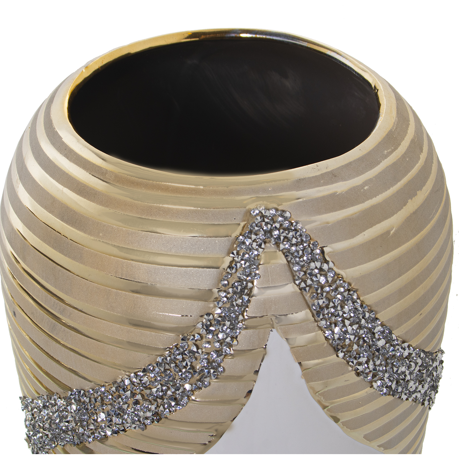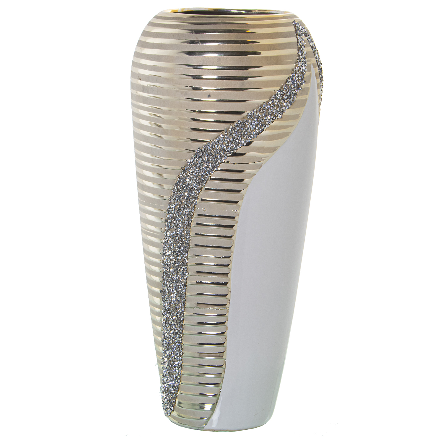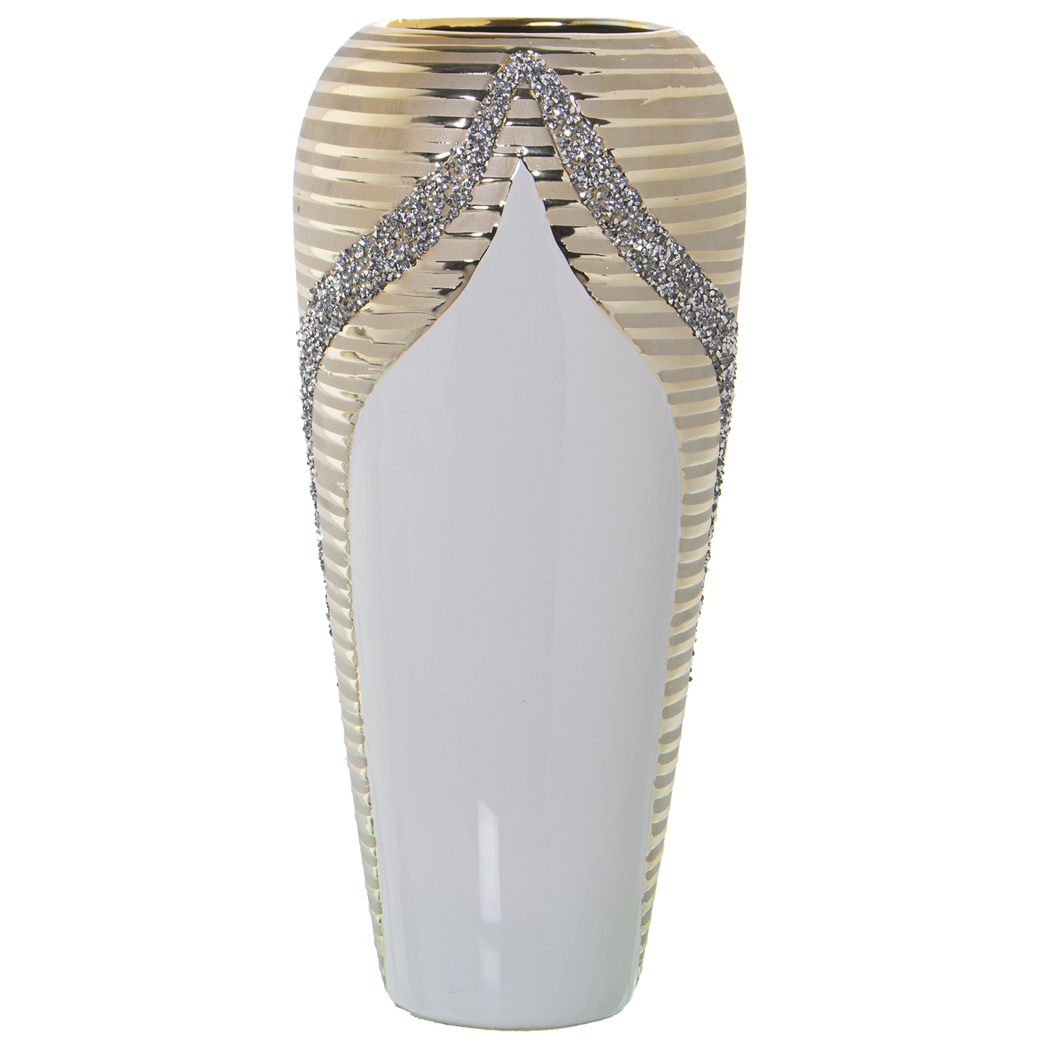 Jarrón de cerámica blanco, champagne y brillos