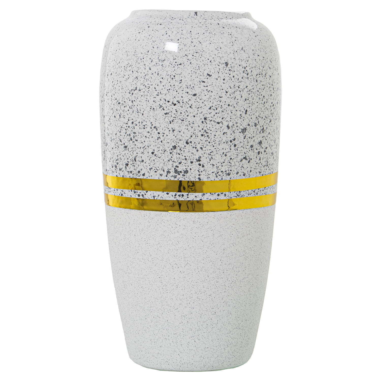 Jarrón de cerámica blanco con detalles dorados y plateados 30 cm