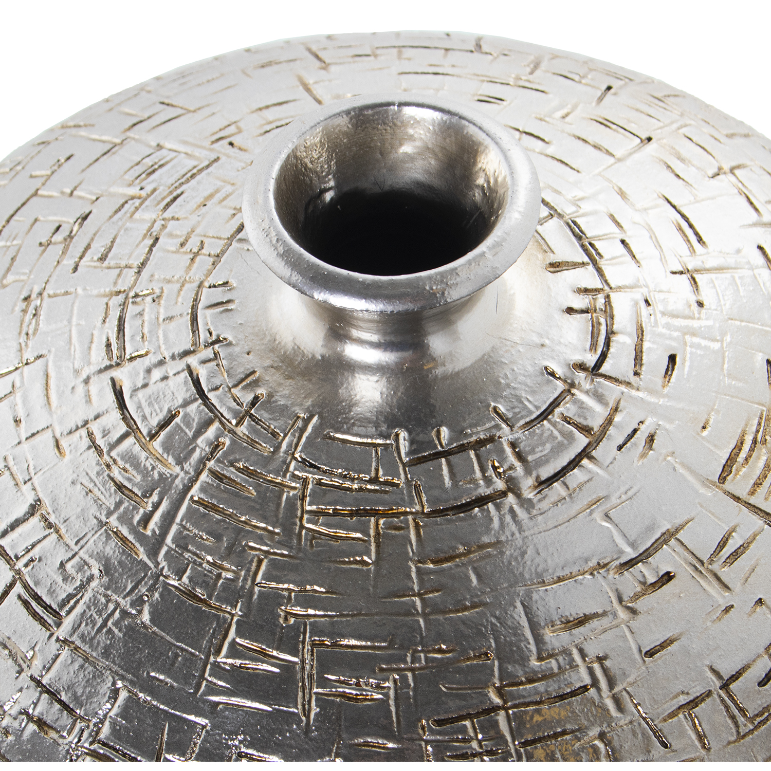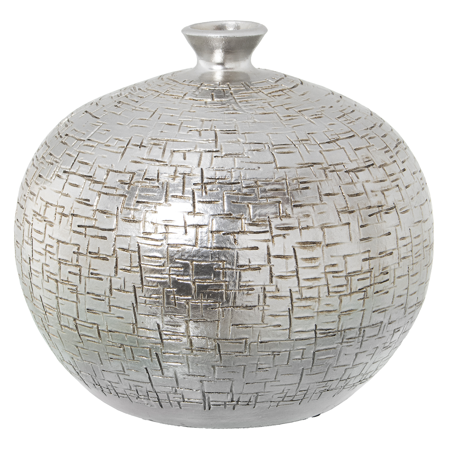 Jarrón de cerámica plateado diseño rayado.