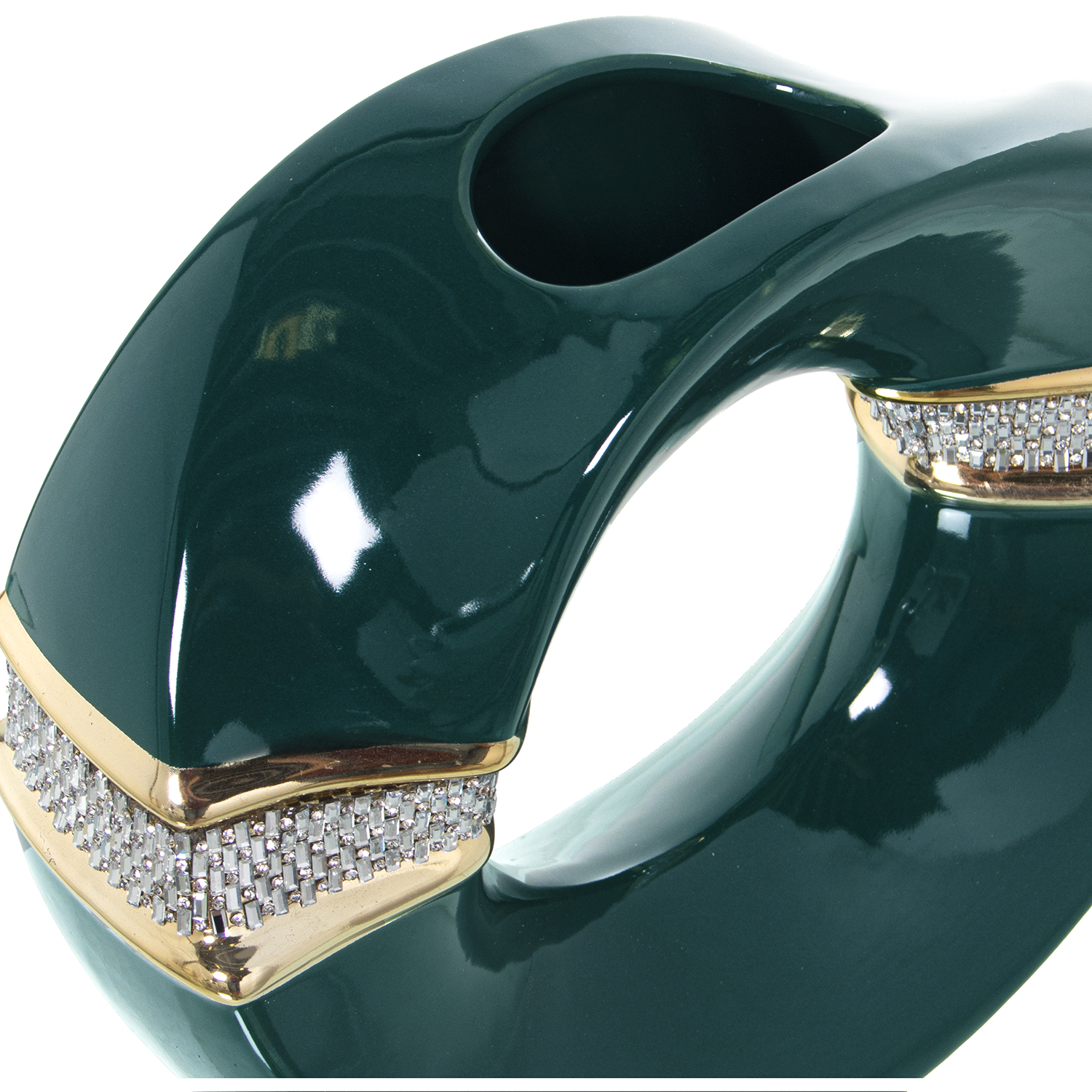 Jarrón de cerámica verde con detalles plata/oro