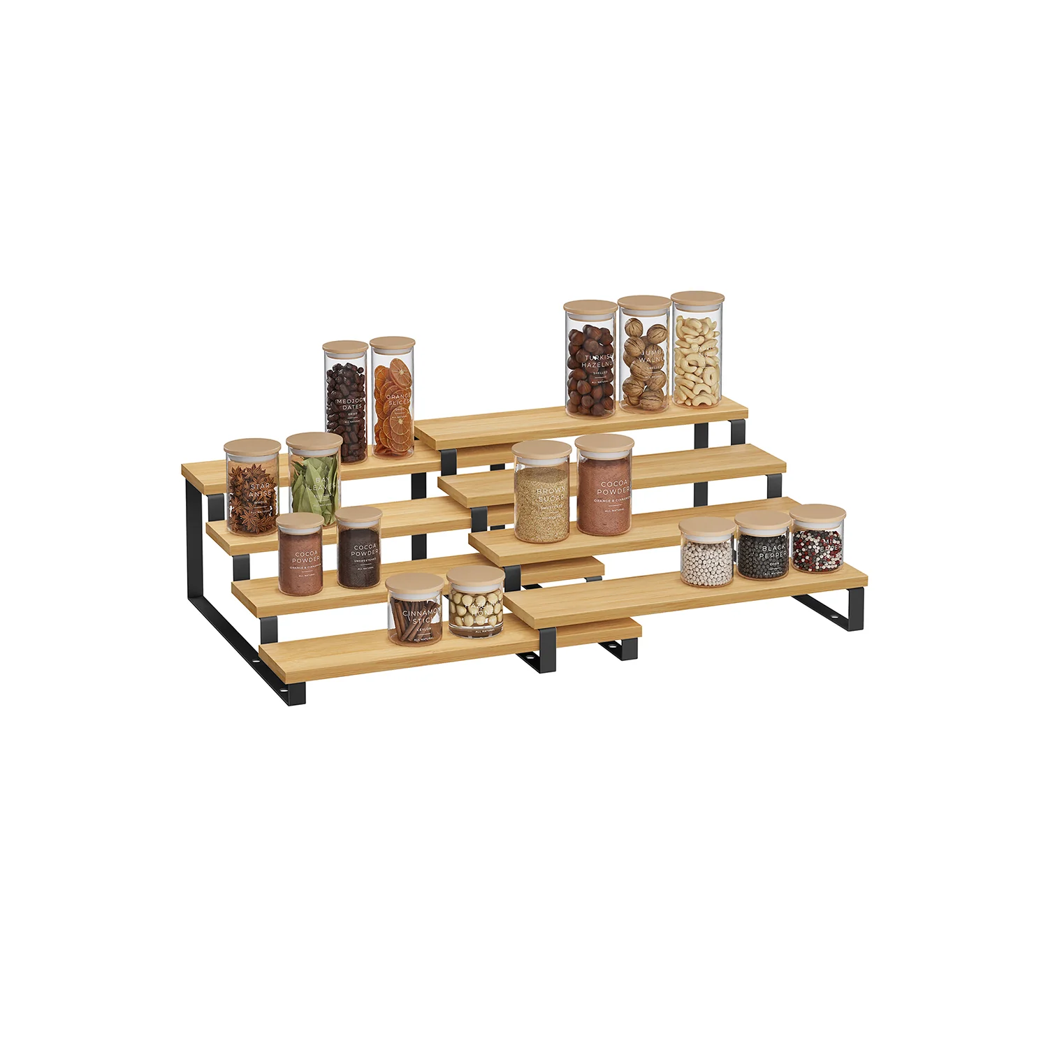 SONGMICS Estante para Especias, Juego de 2 Estantes de Armario, Especiero Extensible de 4 Niveles, Madera de Ingeniería, Apilable, para Despensa, Encimera, Beige Natural y Negro Tinta KCS216N01