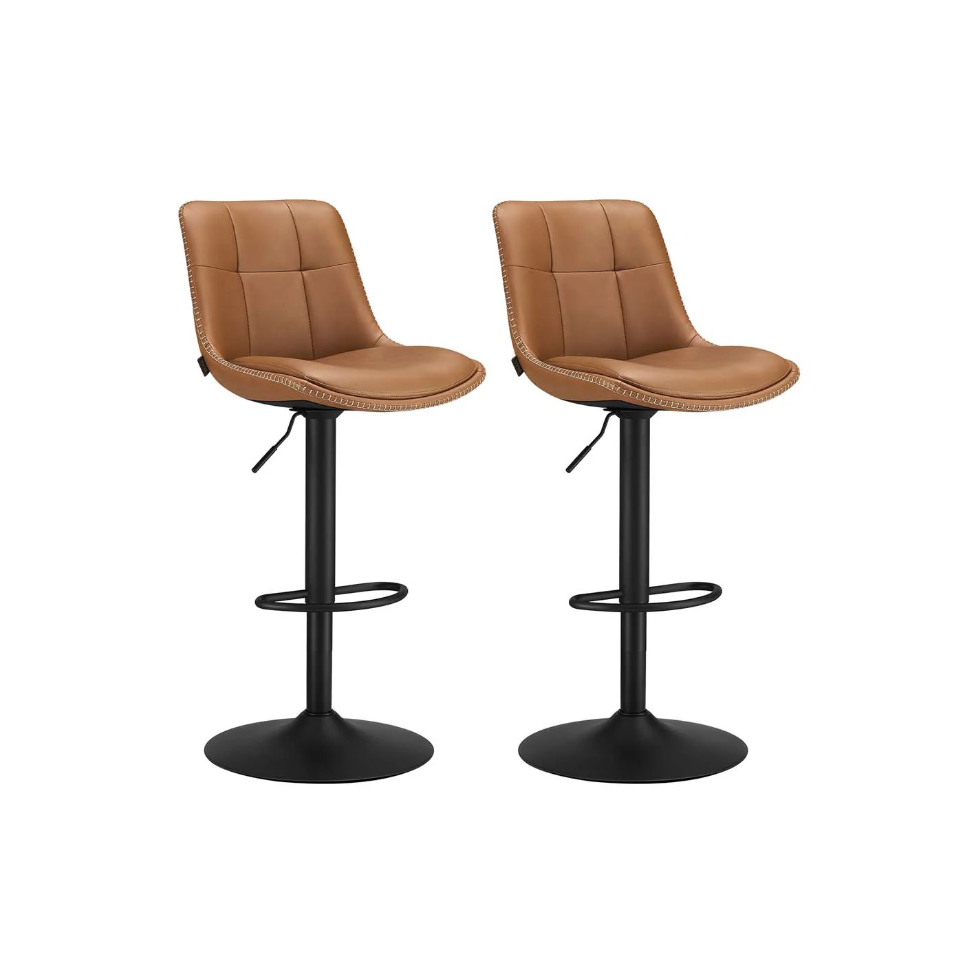 VASAGLE Juego de 2 Taburetes de Bar, Sillas Altas Giratorias Regulables en Altura, Acolchado PU, Sillas de Cocina con Respaldo y Reposapiés, Comedor, Mostrador, Acero
