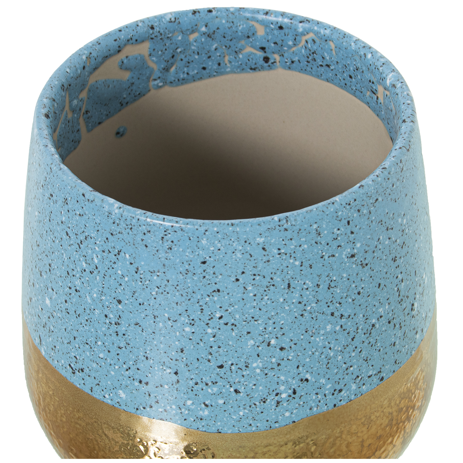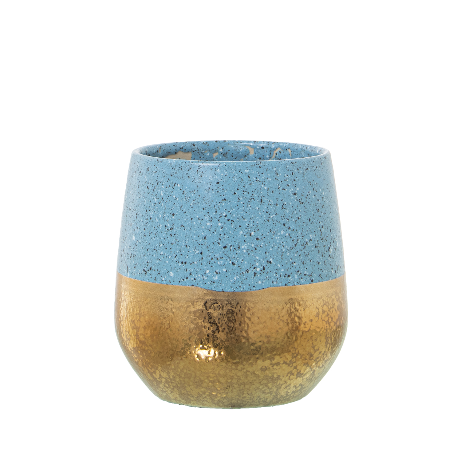 Macetero cerámica dorado/azul.