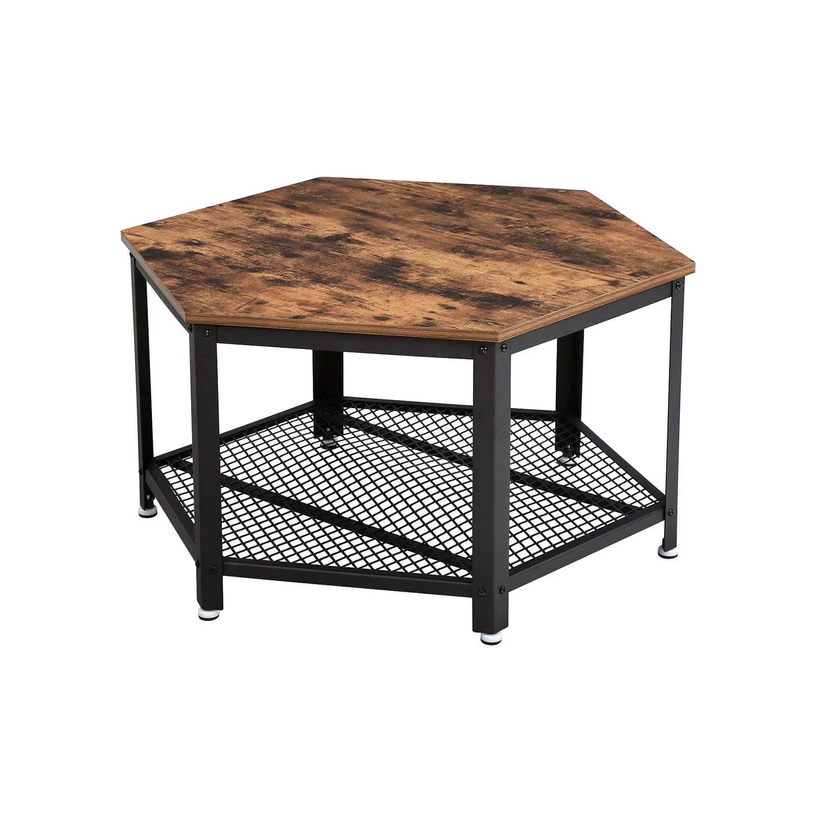 VASAGLE Mesa de Cáfe de Estilo Industrial, Mesa Auxiliar, Mesa de Salón, Marco Métalico Estable, Hexagonal, Aspecto de Madera LCT16X