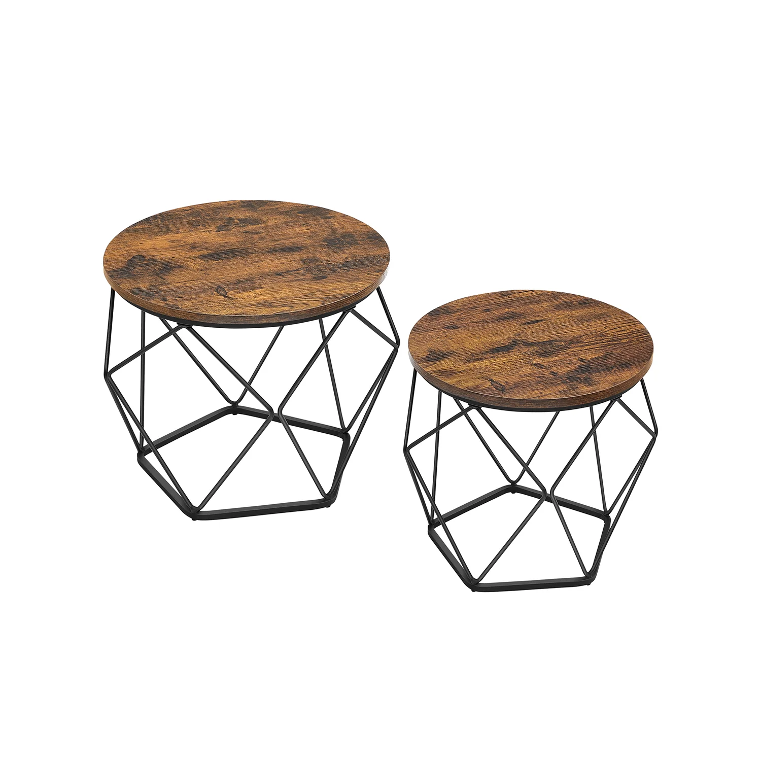 VASAGLE Mesas de Café, Juego de 2 Mesas Auxiliares, Estructura de Acero Robusta, para Sala de Estar, Dormitorio, Marrón Rústico y Negro LET040B01