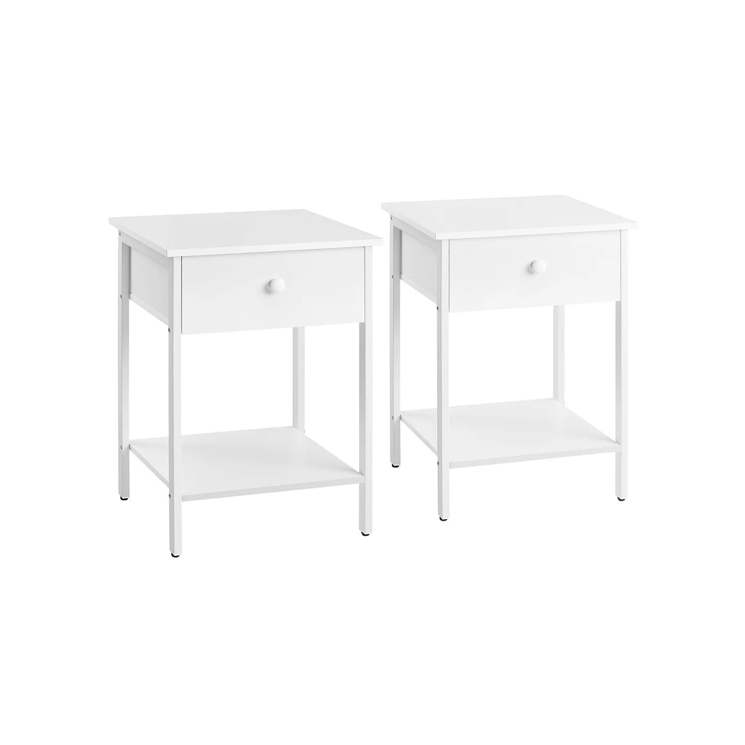 VASAGLE Mesita de Noche, Mesa Auxiliar con Cajón y Estante, para Dormitorio, Salón, Fácil de Montar, Marco de Acero, Diseño Industrial, Marrón Avellana y Negro LET055B03