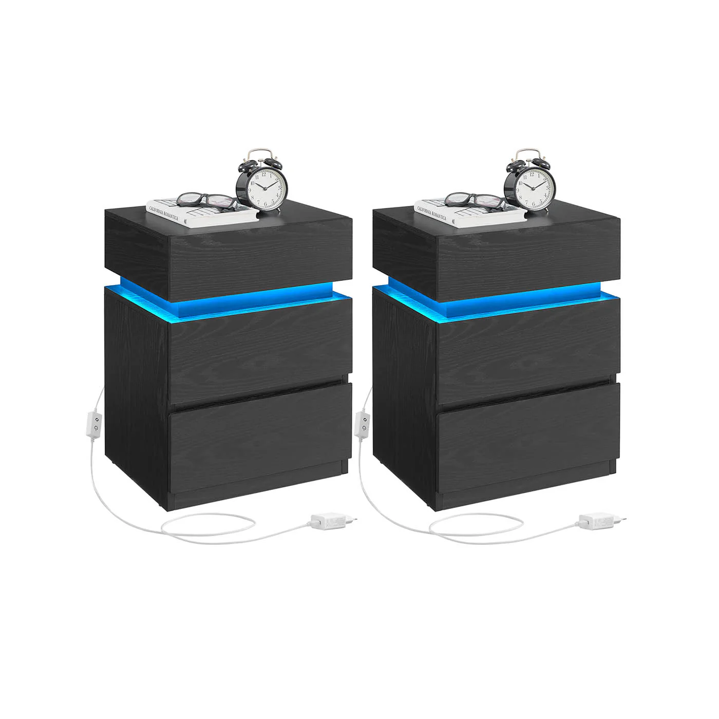 VASAGLE Mesita de Noche con Tira de Luz LED Multicolor Variable, 3 Cajones, Mesa Auxiliar, Estilo Moderno, 33,5 x 40 x 55 cm, Blanco LET630T10