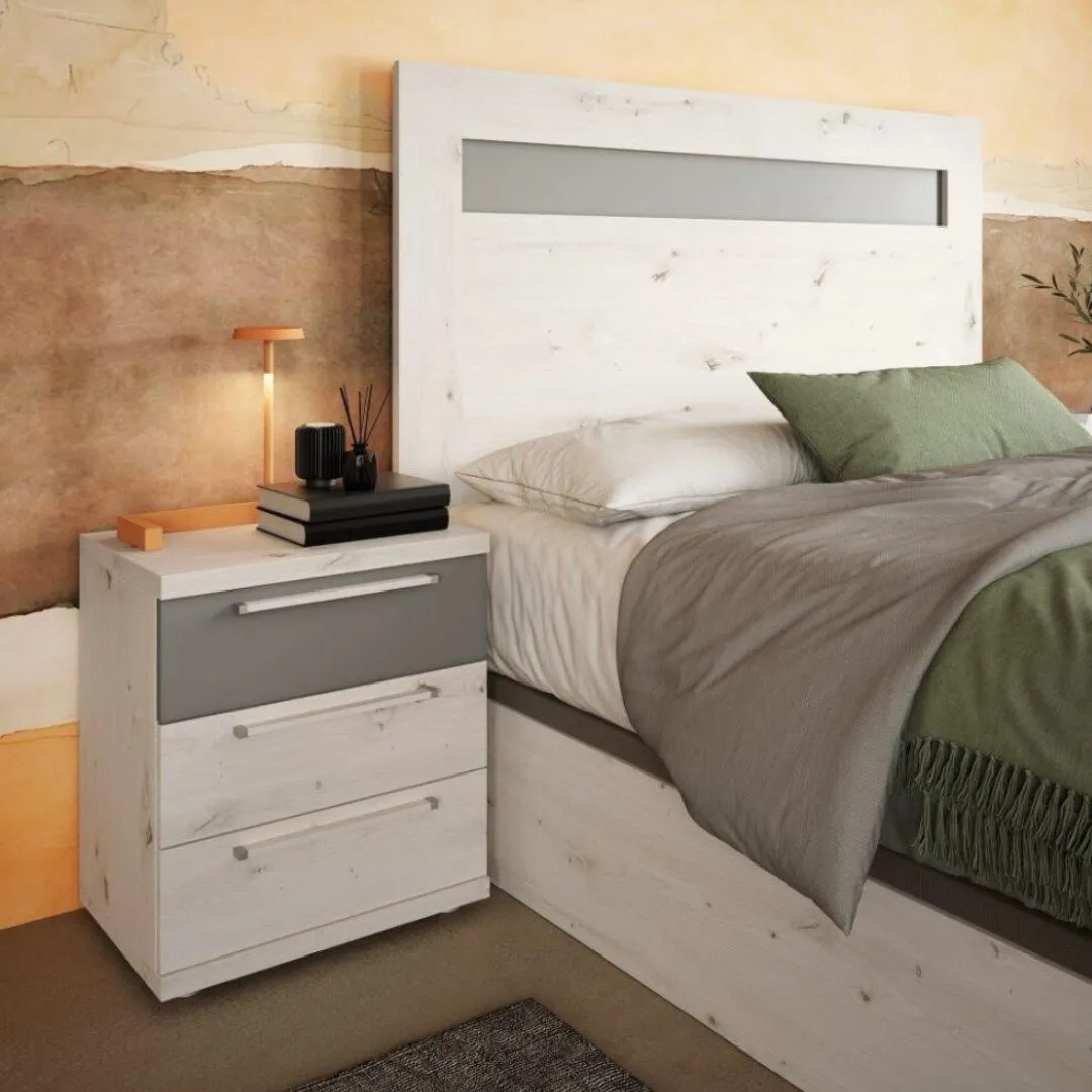 Lo mejor de la mesita noche de madera 3 cajones es su diseño y estética combinable. Su base siempre se presenta en color de madera a elección entre artisan, albian o roble. Mientras que, puede confeccionarla con un color al unísono y sus tiradores a juego o con uno o dos frentes en color grafito, plomo o blanco más tiradores a juego.