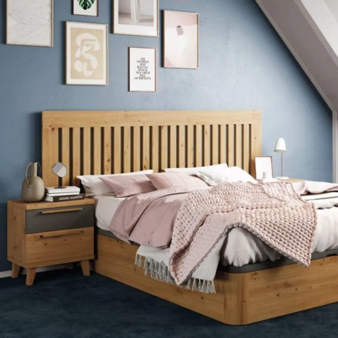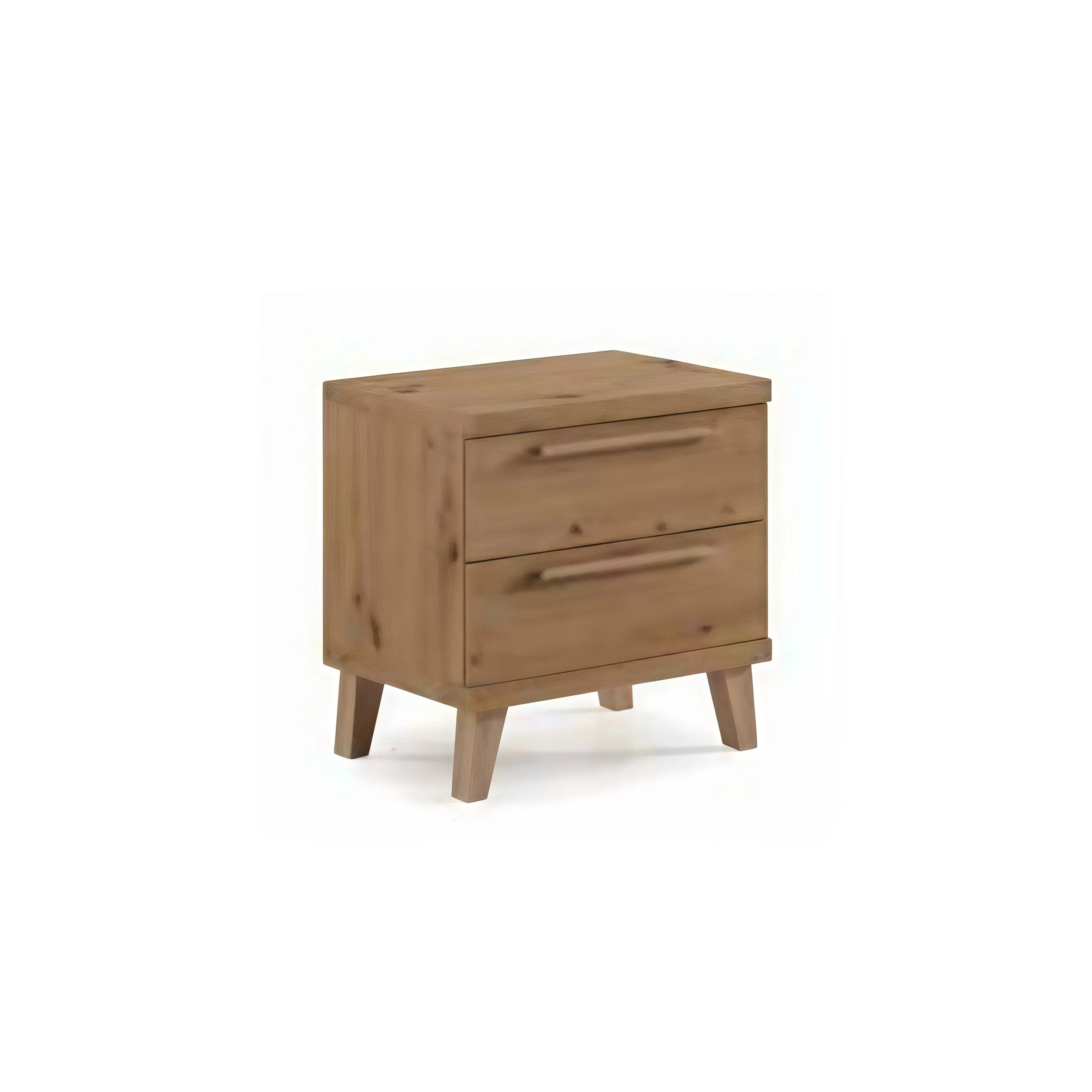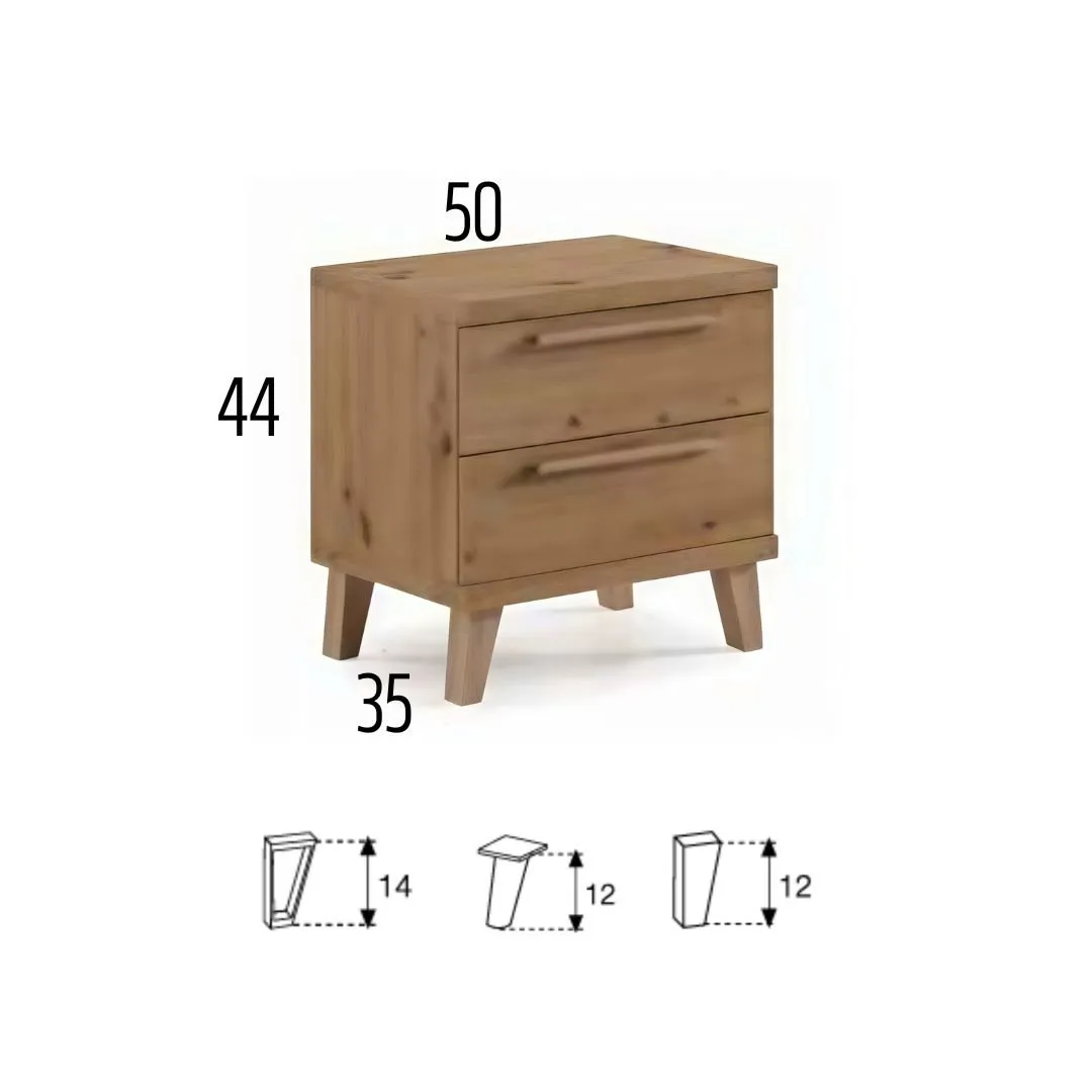 Dos cajones y un posicionamiento al suelo con 12cm/14cm de elevación hacen de esta mesita de noche un mobiliario perfecto para completar la estética de tu espacio de descanso. Una mesita noche con patas que te da el espacio para tener a mano los objetos de uso diario junto a la estética más combinable y a la mejor de las funcionalidades.