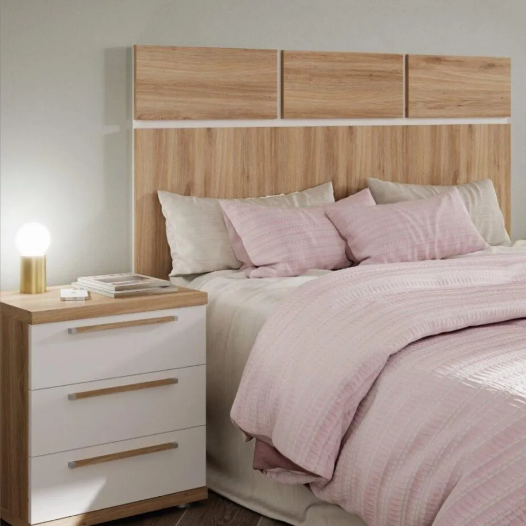 Lo mejor de la mesita noche de madera 3 cajones es su diseño y estética combinable. Su base siempre se presenta en color de madera a elección entre artisan, albian o roble. Mientras que, puede confeccionarla con un color al unísono y sus tiradores a juego o con uno o dos frentes en color grafito, plomo o blanco más tiradores a juego.