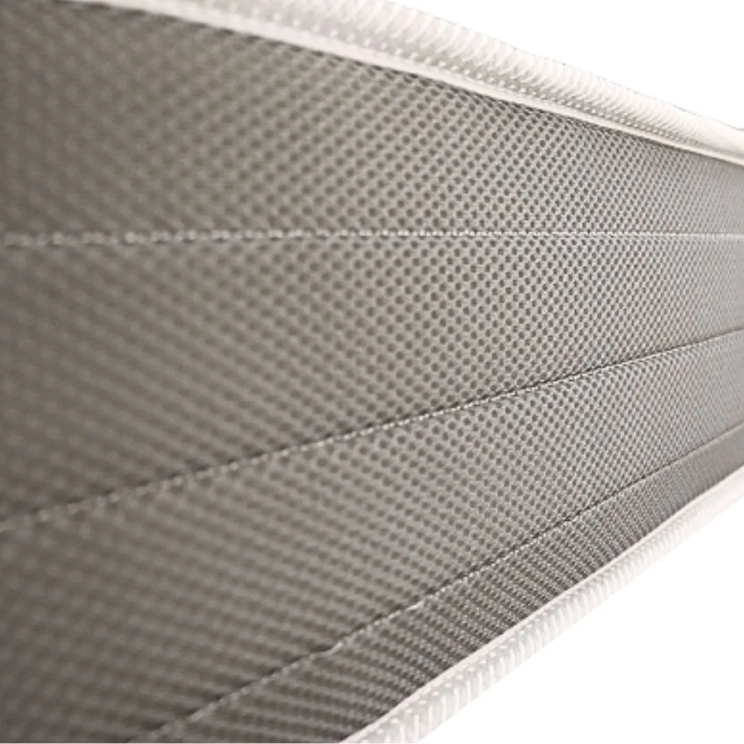 Formada por un tejido 3D, la platabanda lateral del colchón Fibra Strech actúa como canal de ventilación. Mejora el flujo del aire del colchón en su interior y acaba con las sudoraciones nocturnas el tejido 3D. Está diseñada con un estilo uniforme en color gris