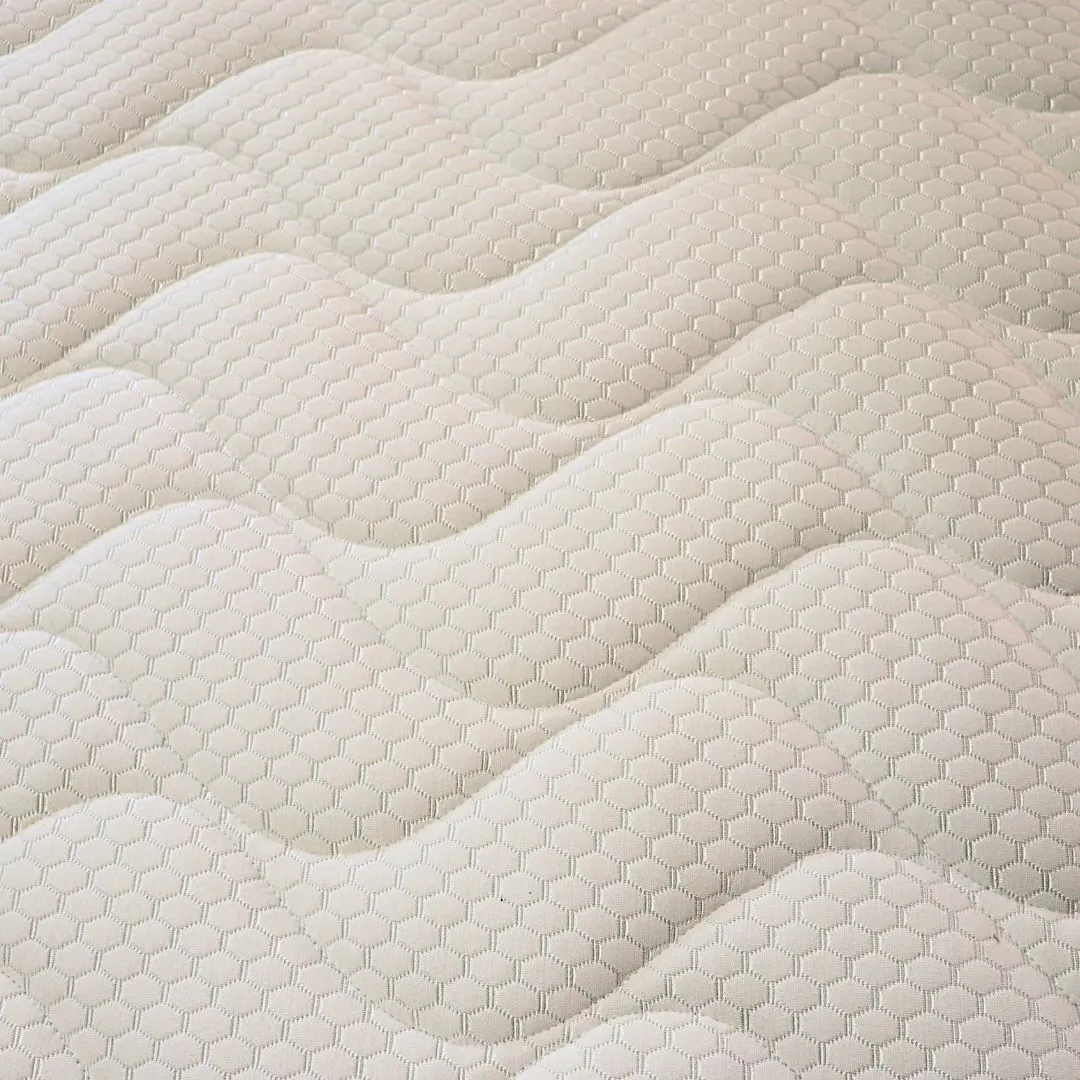 La cara principal y superior del colchón Fibra Strech está formada por un tejido strech. Se trata de un tejido que destaca por ser flexible, elástico y cómodo, pero, sobre todo, de tacto suave y altamente transpirable. Proporciona un confort único a través del valle hexagonal que muestra en su cara visible y contiene tratamientos higiénicos que actúan como barrera frente a ácaros, bacterias o manchas difíciles.