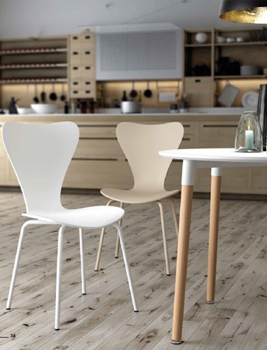 Pack de 4 sillas de polipropileno con patas metálicas lacadas en el color del respaldo, modelo Berna.