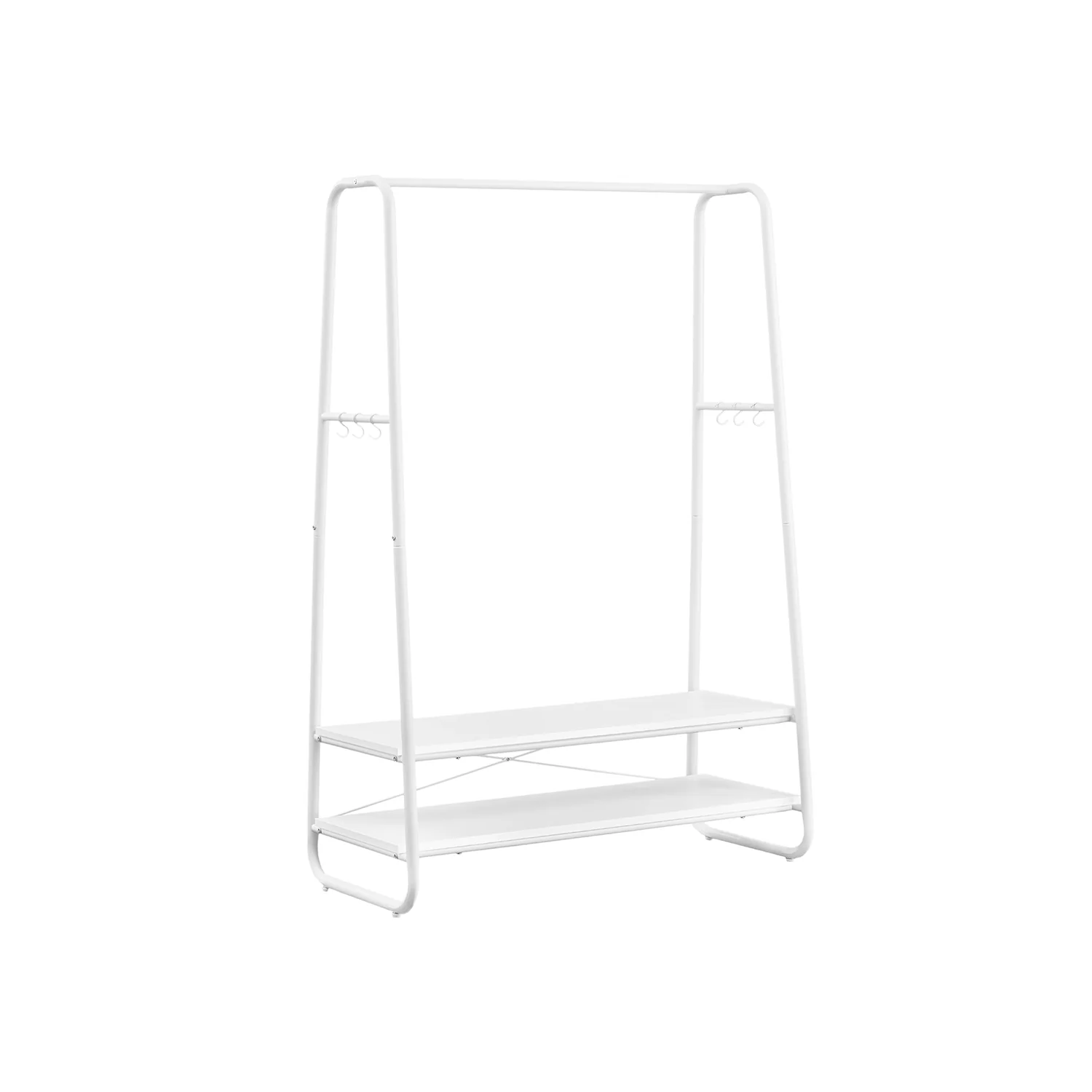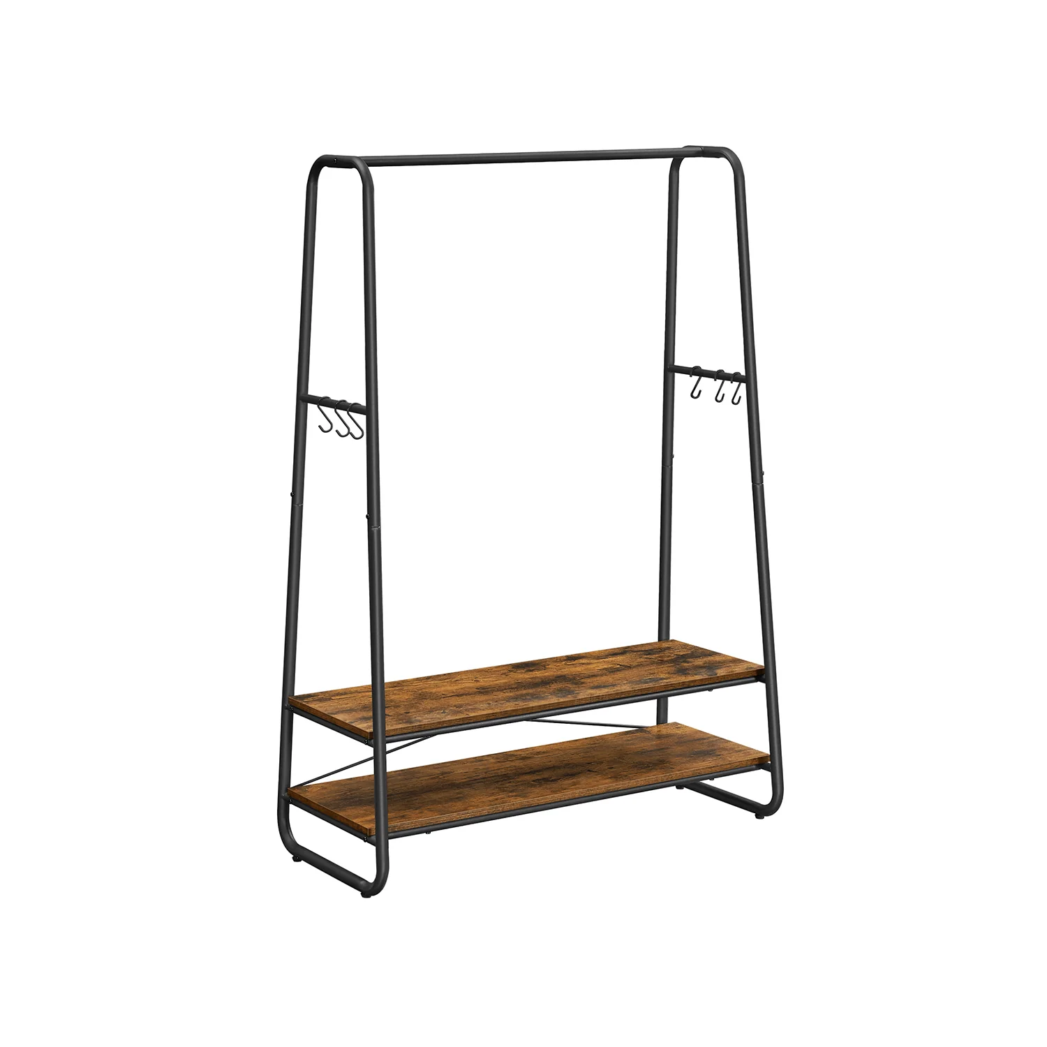 VASAGLE Perchero Burro, Perchero Recibidor con 2 Estantes, 6 Ganchos en Forma de S, Marco de Acero, para el Dormitorio