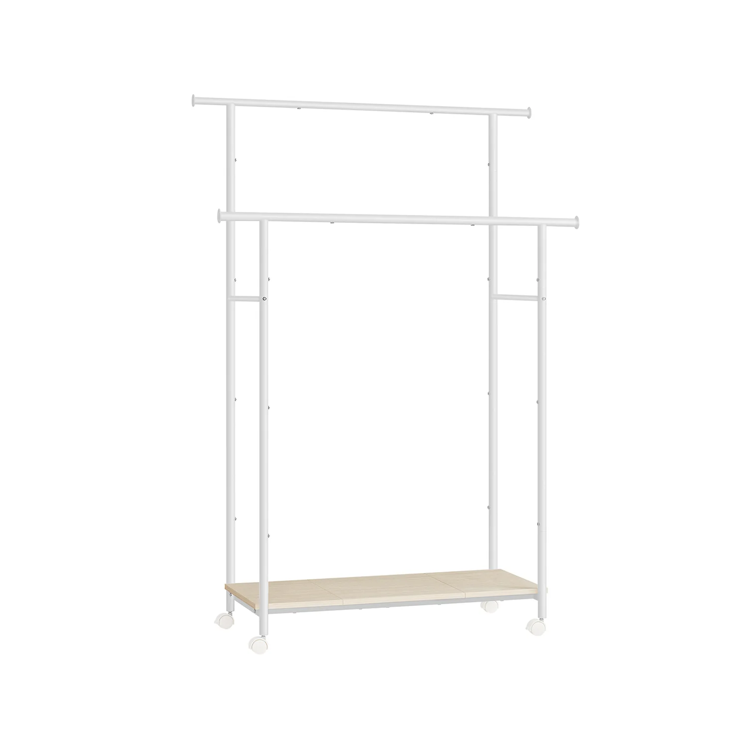 SONGMICS Perchero con Ruedas, Perchero de Doble Barra, con Estante, 98,5 cm de Ancho, Soporta 100 kg en Total, Marco de Acero
