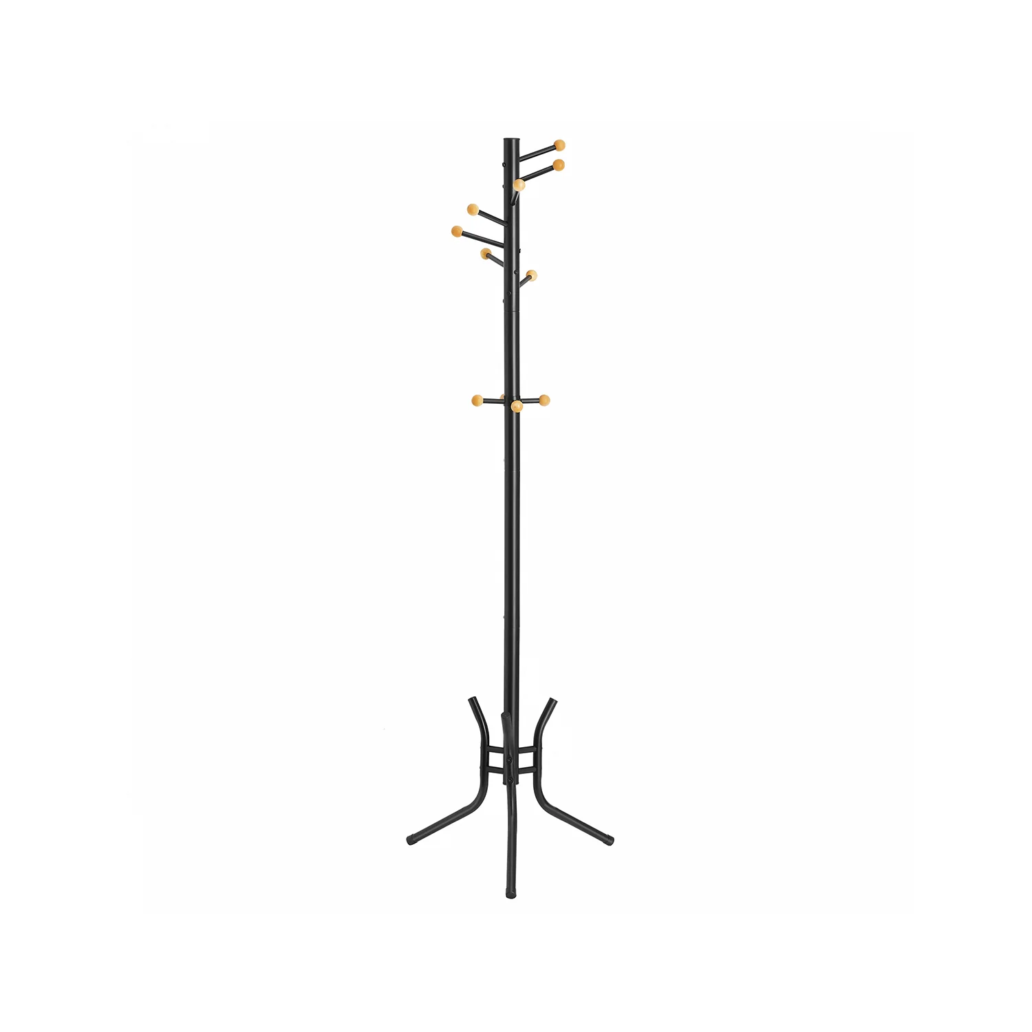 SONGMICS Perchero de pie, Perchero para abrigos, Acero, con 11 Ganchos con bola de madera, para Ropa, Sombrero, Bolsa, 53,5 x 53,5 x 173 cm cm, Negro RCR028B01