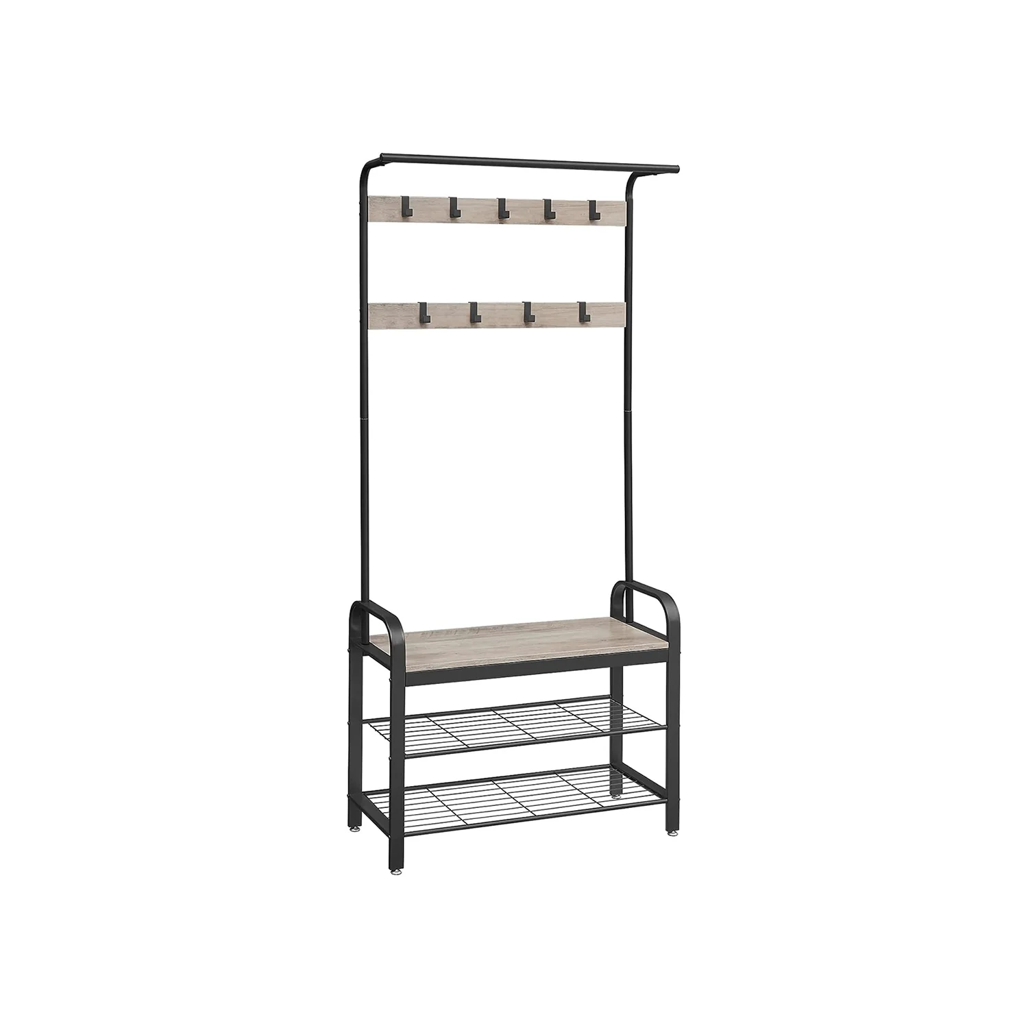VASAGLE Perchero Metálico con Zapatero, Espacio de Almacenaje, con Ganchos Movibles, 72 x 33,7 x 183 cm, Beige HSR40W