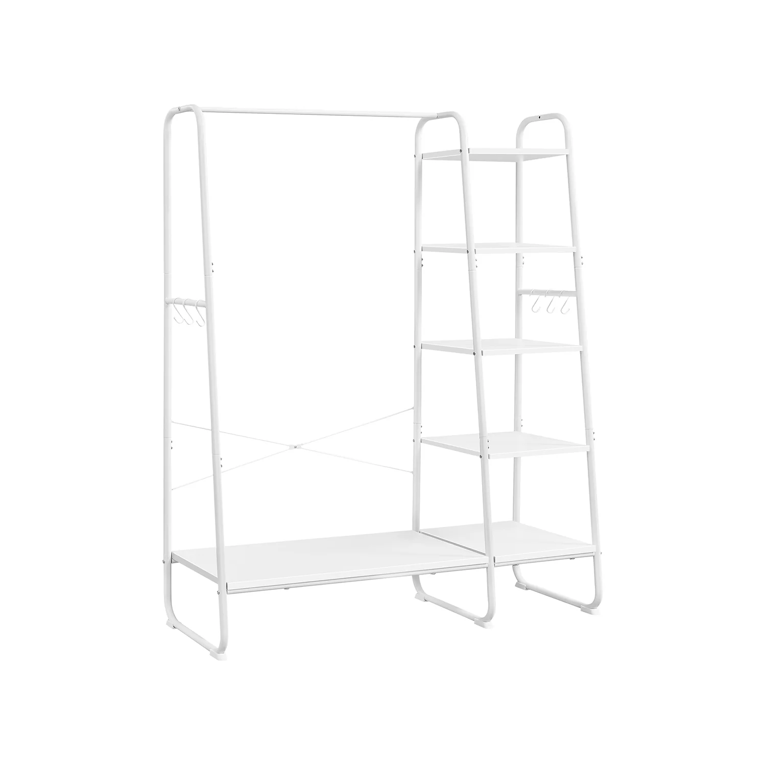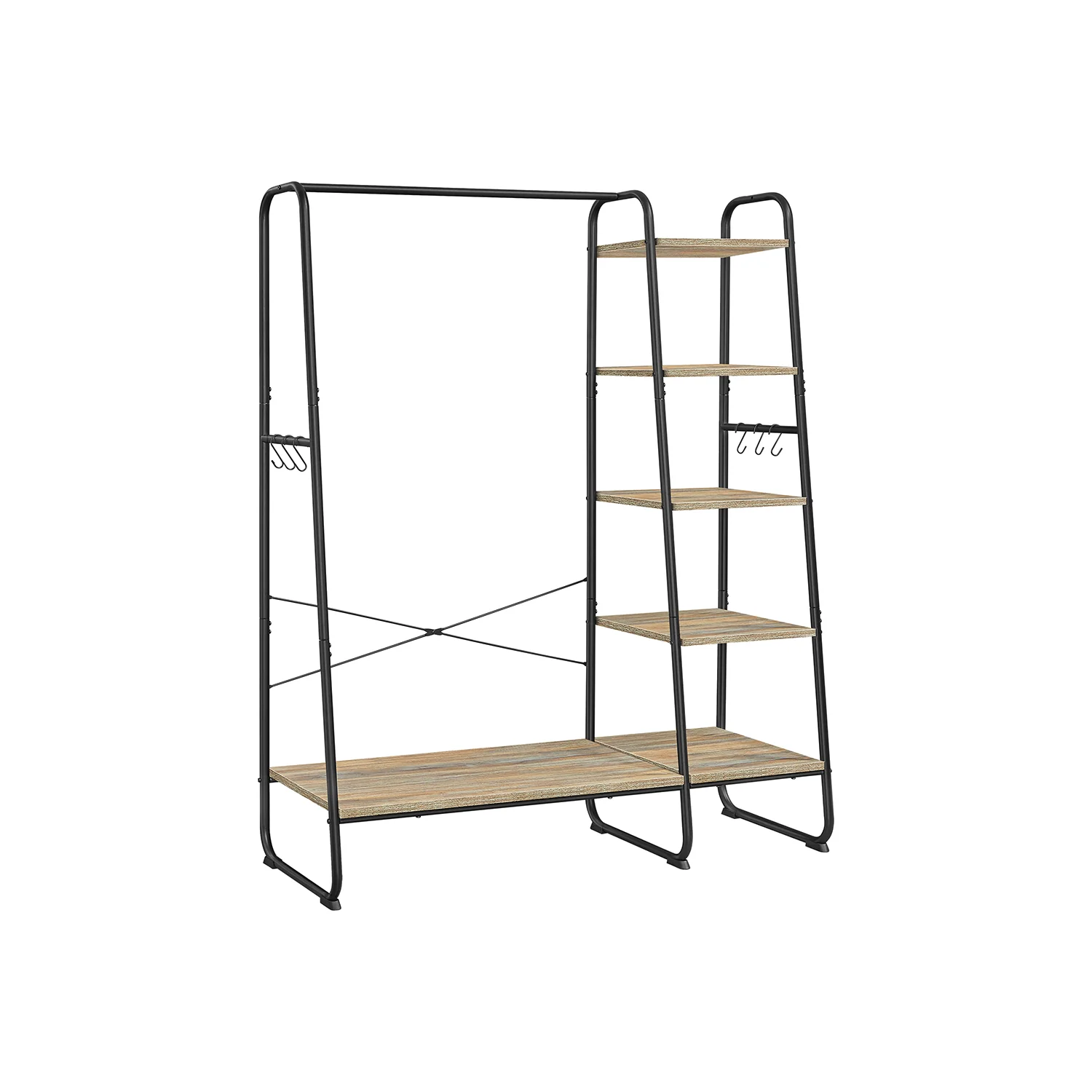 VASAGLE perchero para ropa, perchero con zapatero, estante de almacenamiento de 5 niveles, 6 ganchos laterales, para dormitorio, sala de estar