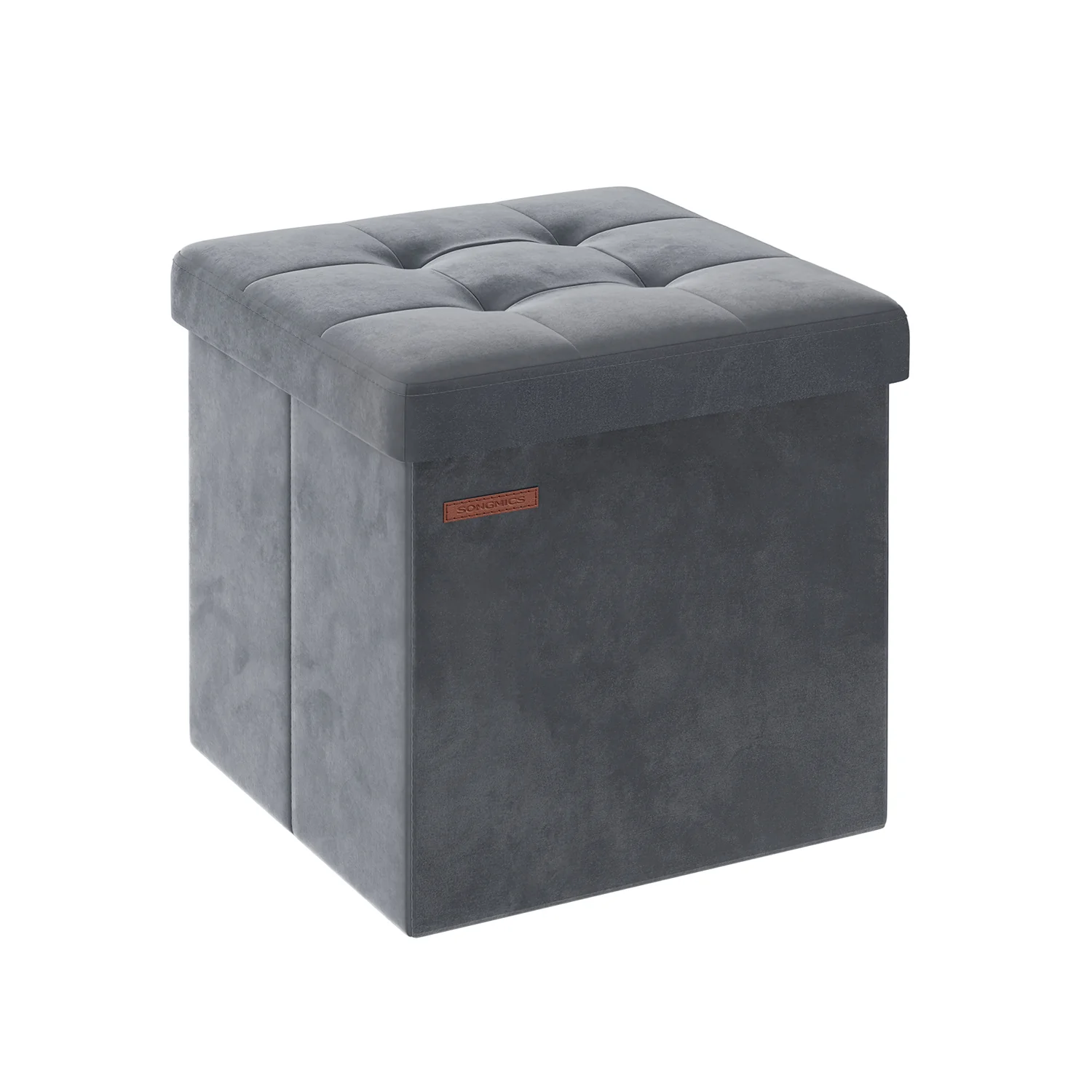 SONGMICS Puff Almacenaje, Banco de Almacenamiento de Terciopelo Plegable, Taburete Reposapiés, para Entrada, Sala de Estar, Dormitorio