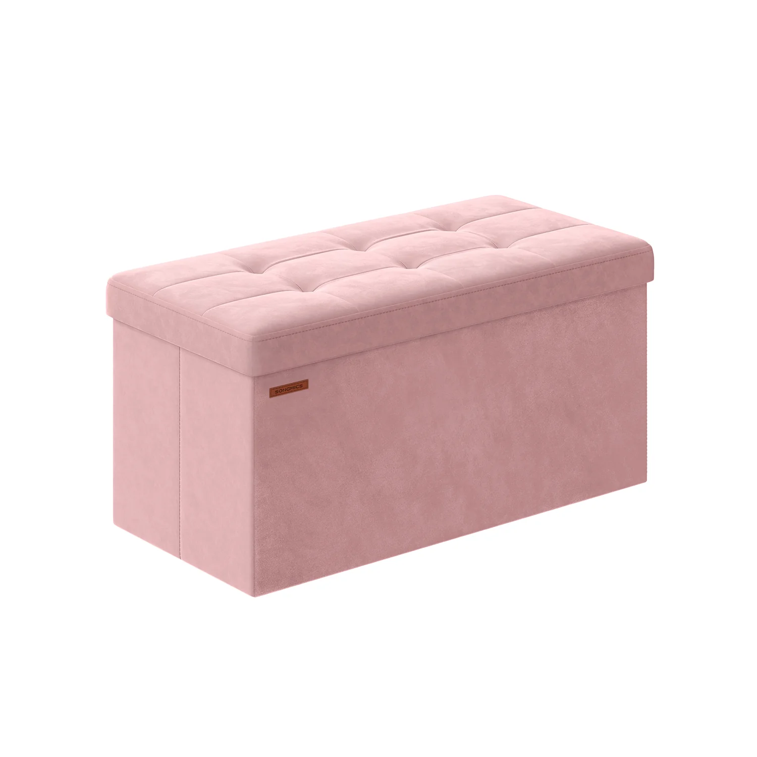 SONGMICS Puff Almacenaje, Banco Almacenaje Terciopelo Plegable, Taburete Reposapiés, 2 Cajas Almacenaje, 38 x 76 x 38 cm, Carga 300 kg, para Entrada, Sala de Estar, Dormitorio