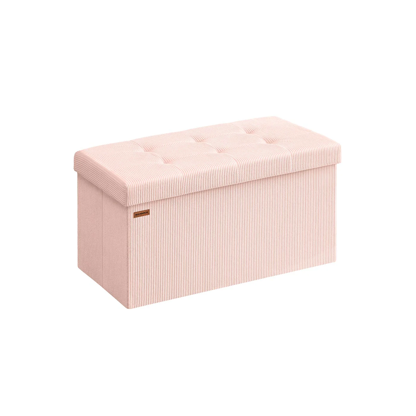 SONGMICS Puff Almacenaje, Baúl de Almacenaje Plegable, 38 x 76 x 38 cm, Taburete Reposapiés, Banco de Cama, Soporta hasta 300 kg, para Sala de Estar, Dormitorio, Entrada, Rosa Jalea LSF603R01