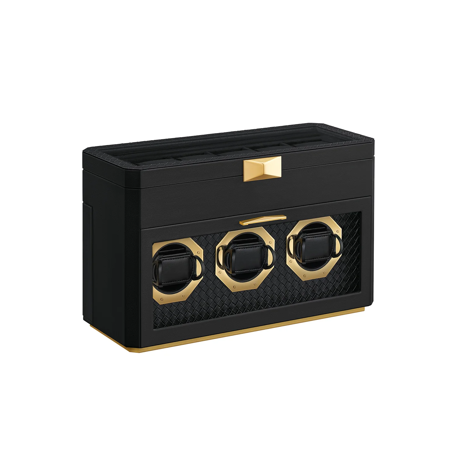 SONGMICS HOME RONNE Colección – Caja para 9 Relojes, Ventanas de Cristal para Relojes, con Soportes Ajustables para Relojes, Tejido PU Repujado, Efecto Flotante, Idea Regalo, Negro Tinta JWB026B01