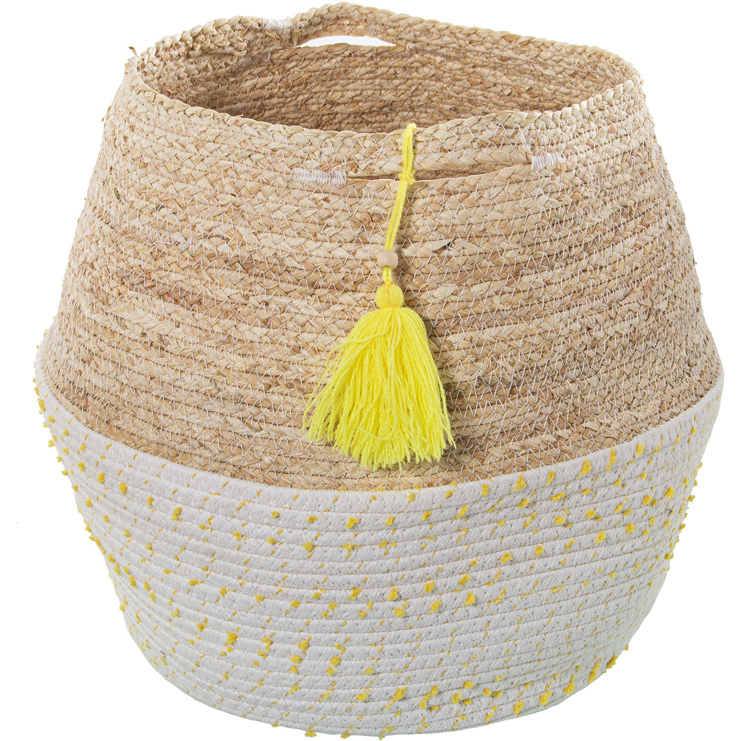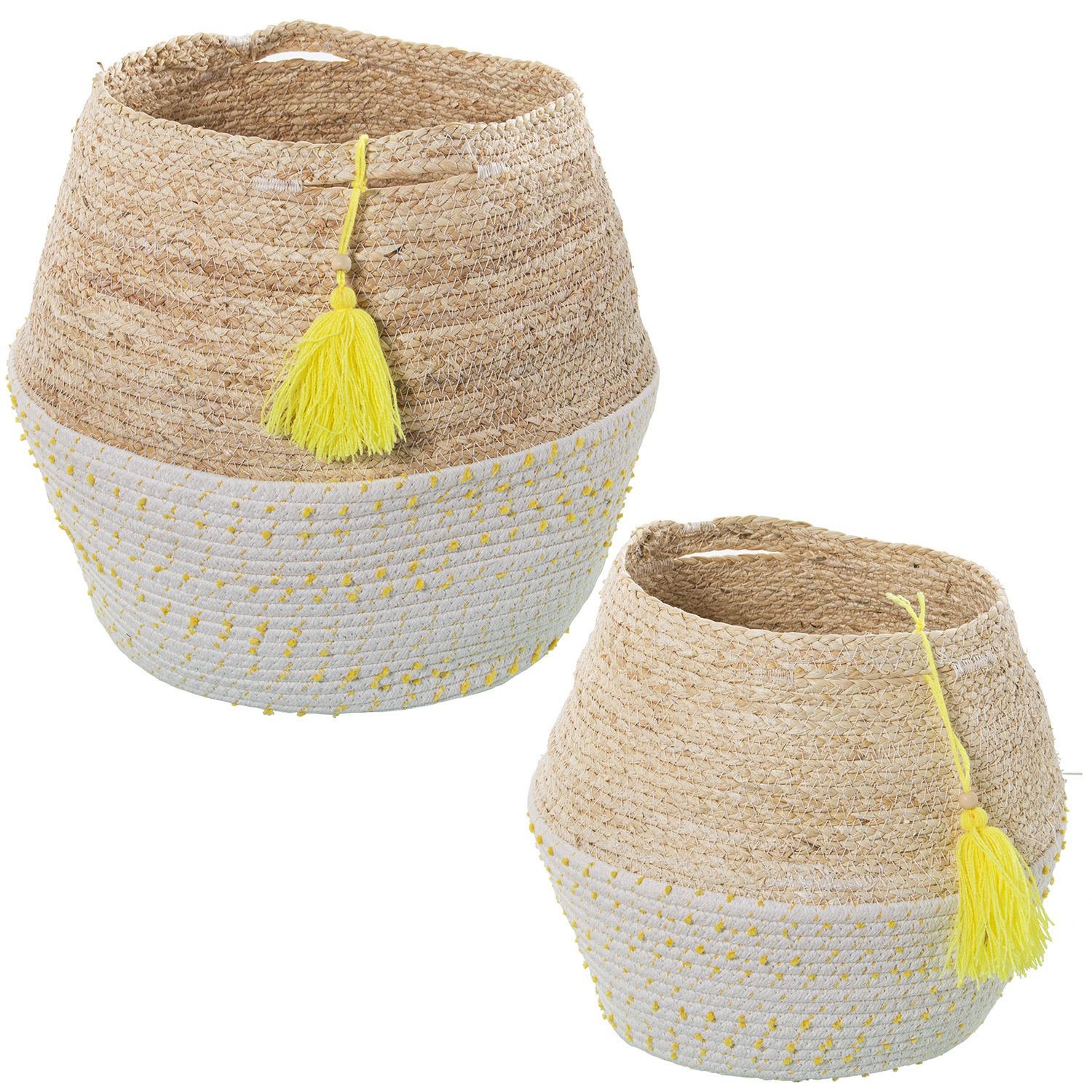 SET 2 Cestos forma ovalada hojas de maiz/algodón con lunares amarillos para decoración
