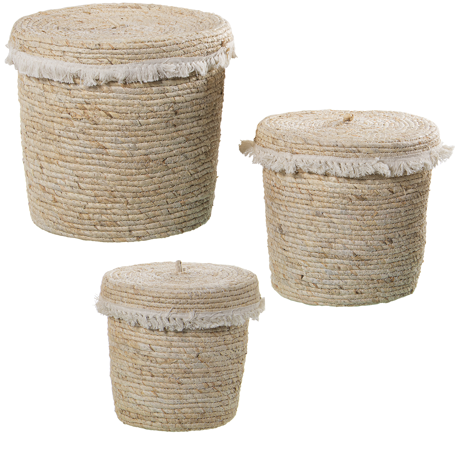 SET 3 Cestos de hojas de maiz natural con flecos de algodón y sin asas para decoración.