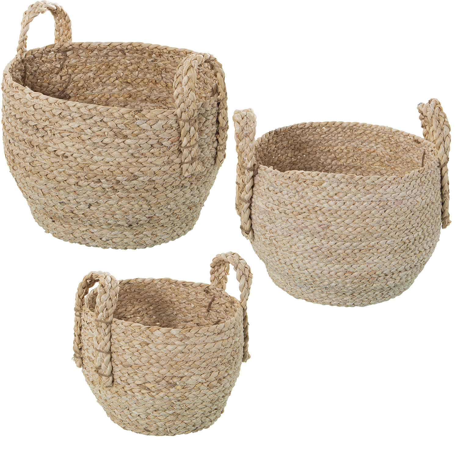 SET 3 Cestos con asas de hojas de maiz naturan para decoración