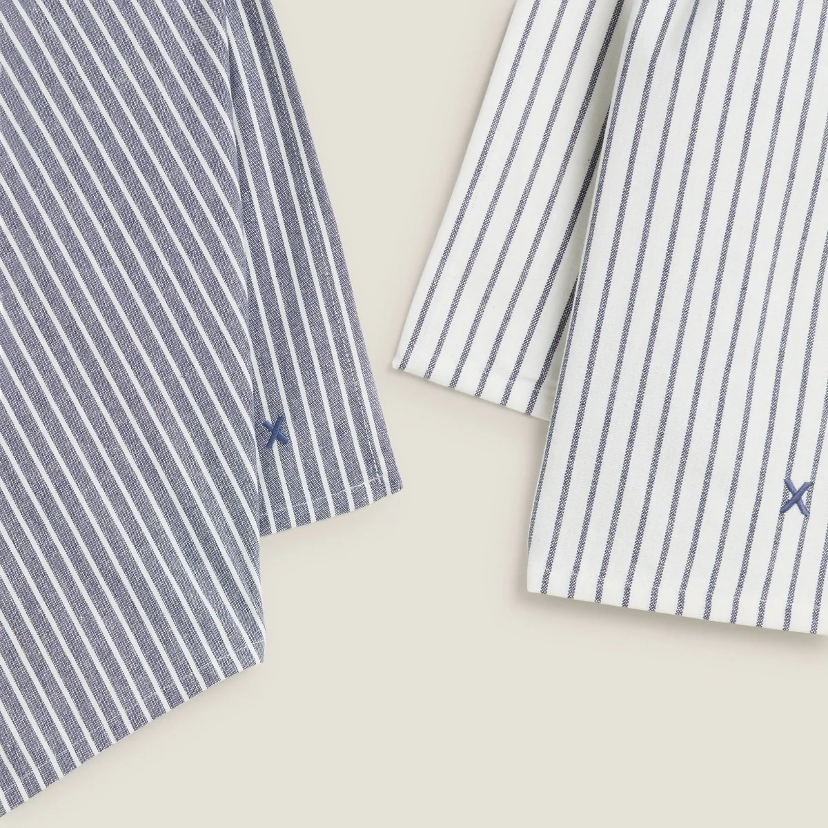 Set de 2 trapos de cocina de algodón tejido a rayas en positivo y negativo. Con presilla para colgar.