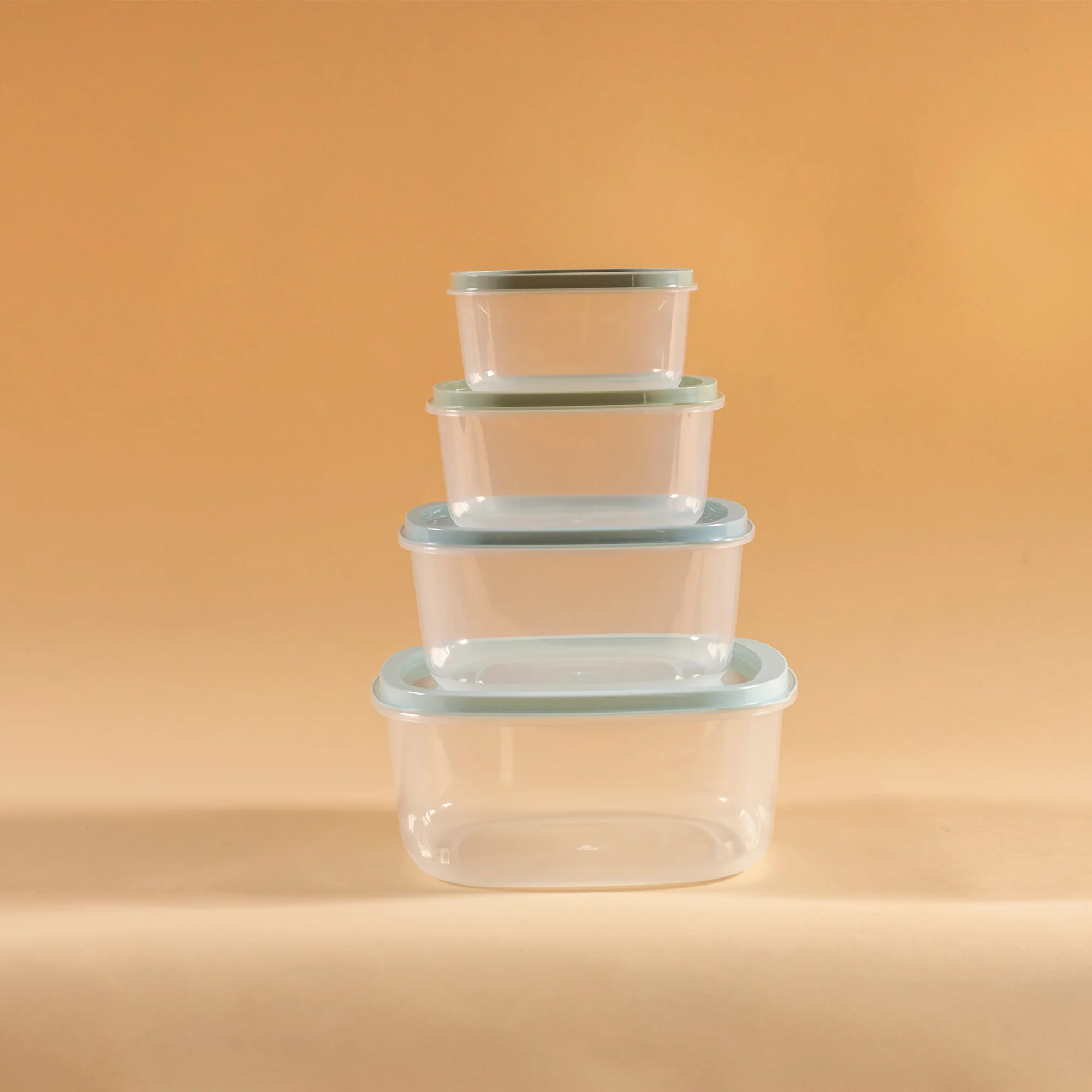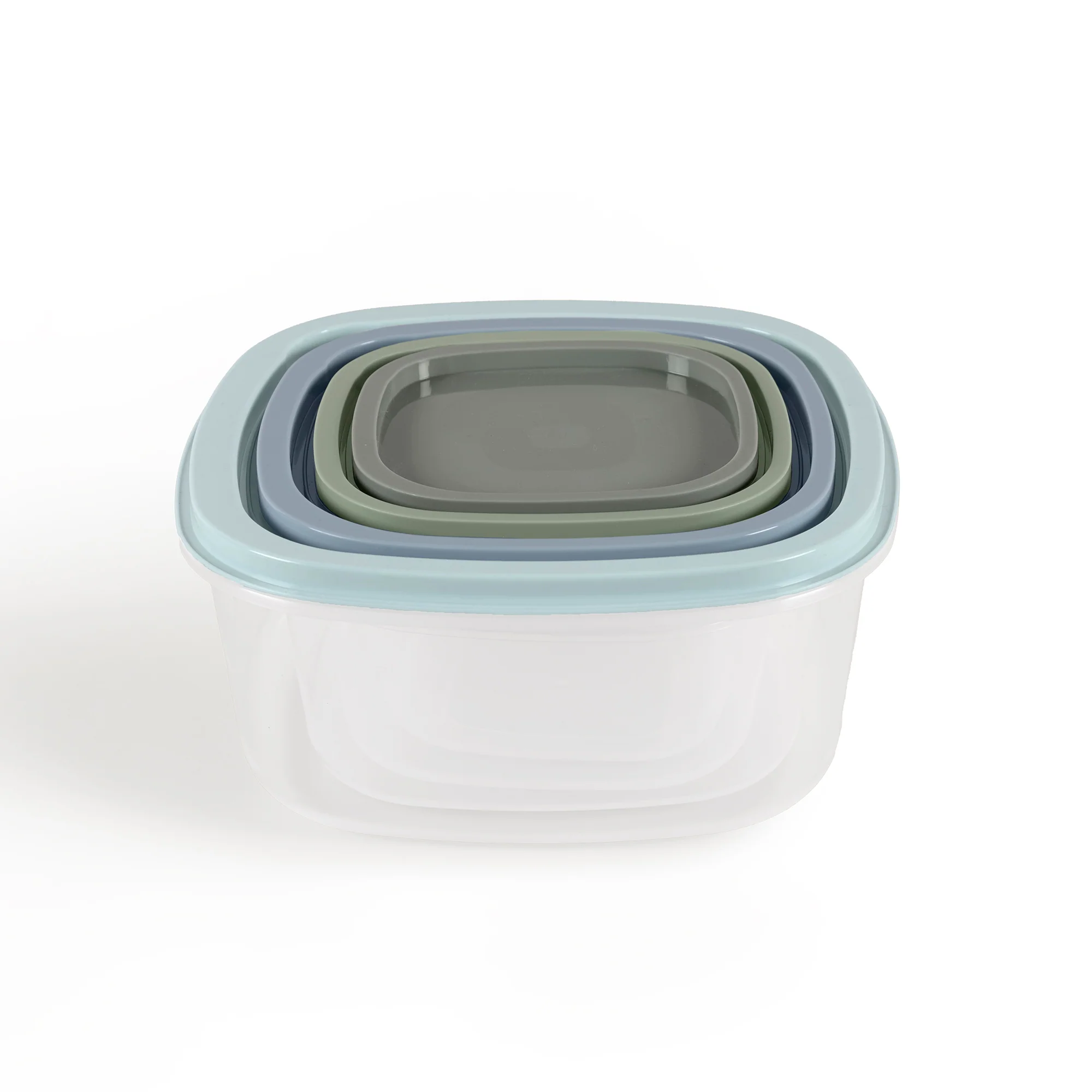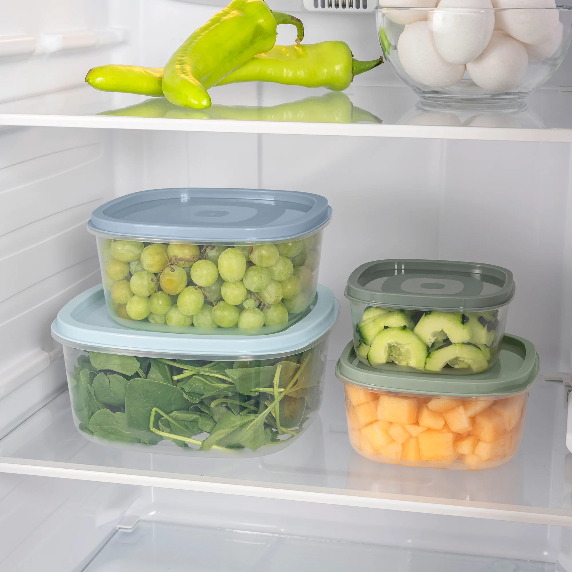 Set de 4 contenedores cuadrados en gama de color azul ideales para identificar tus alimentos fácilmente