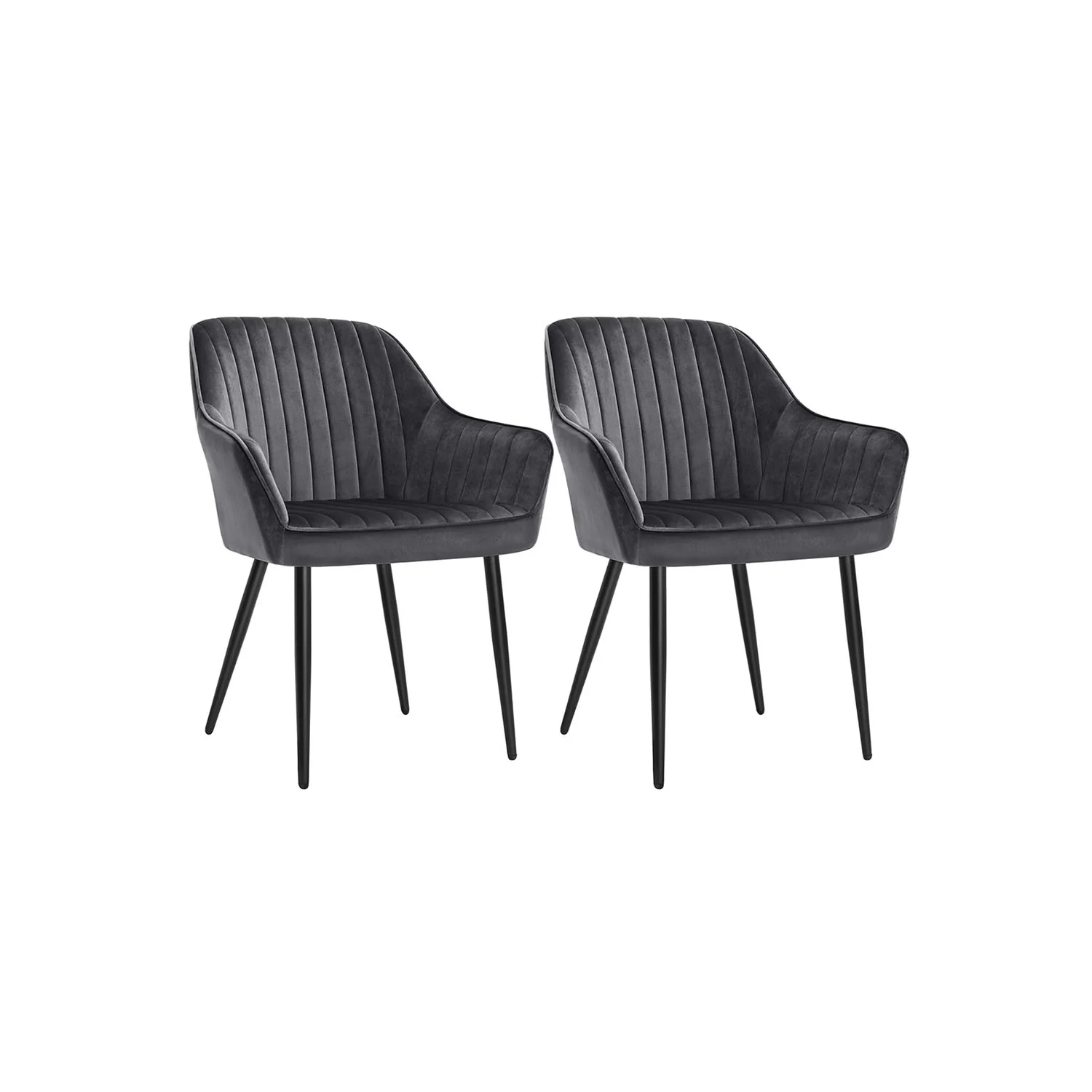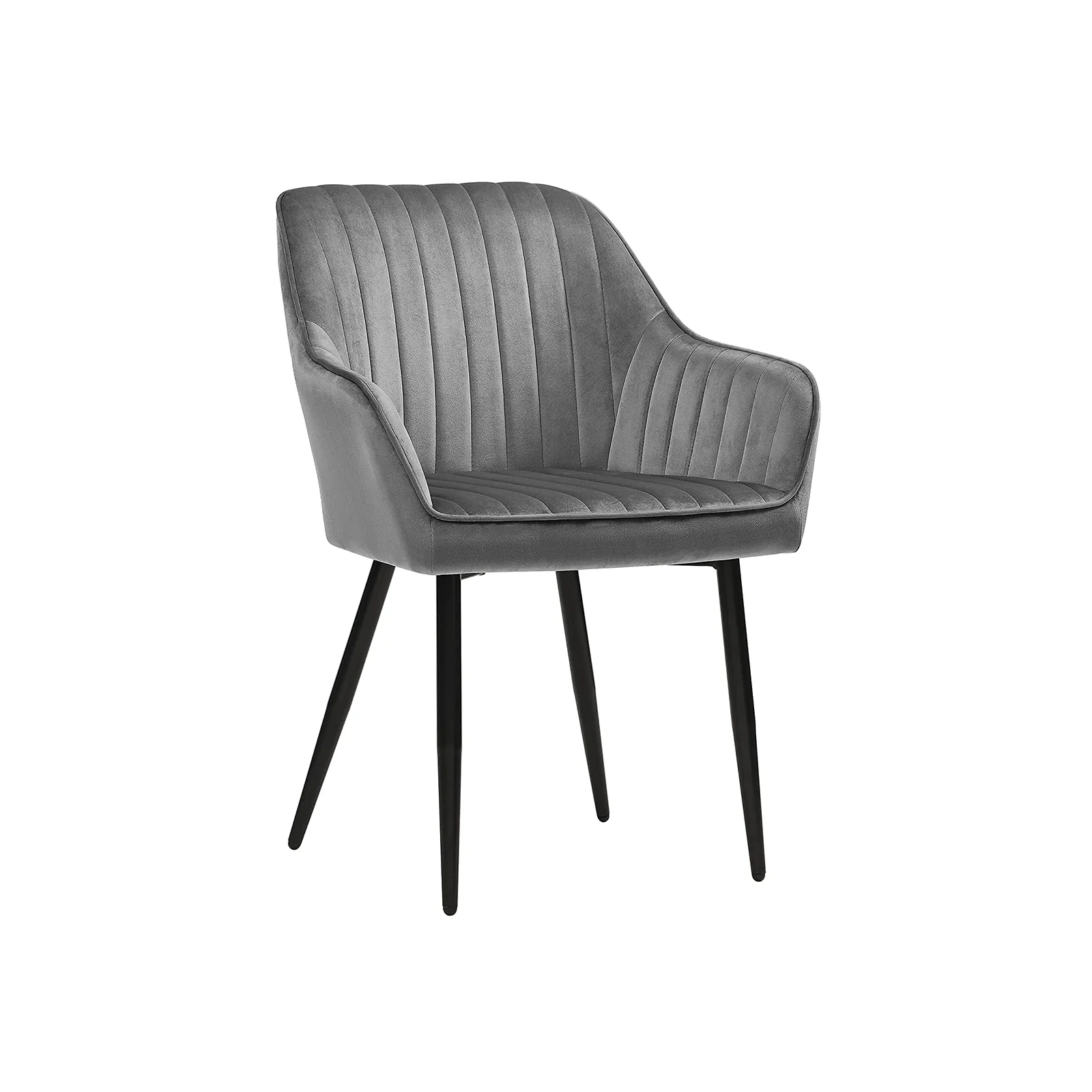 SONGMICS Silla de Comedor, Sillón, Silla tapizada con reposabrazos, Asiento de 49 cm de Ancho, Patas metálicas, Forro de Terciopelo, Carga de 110 kg, para Dormitorio, salón, Gris LDC087G01