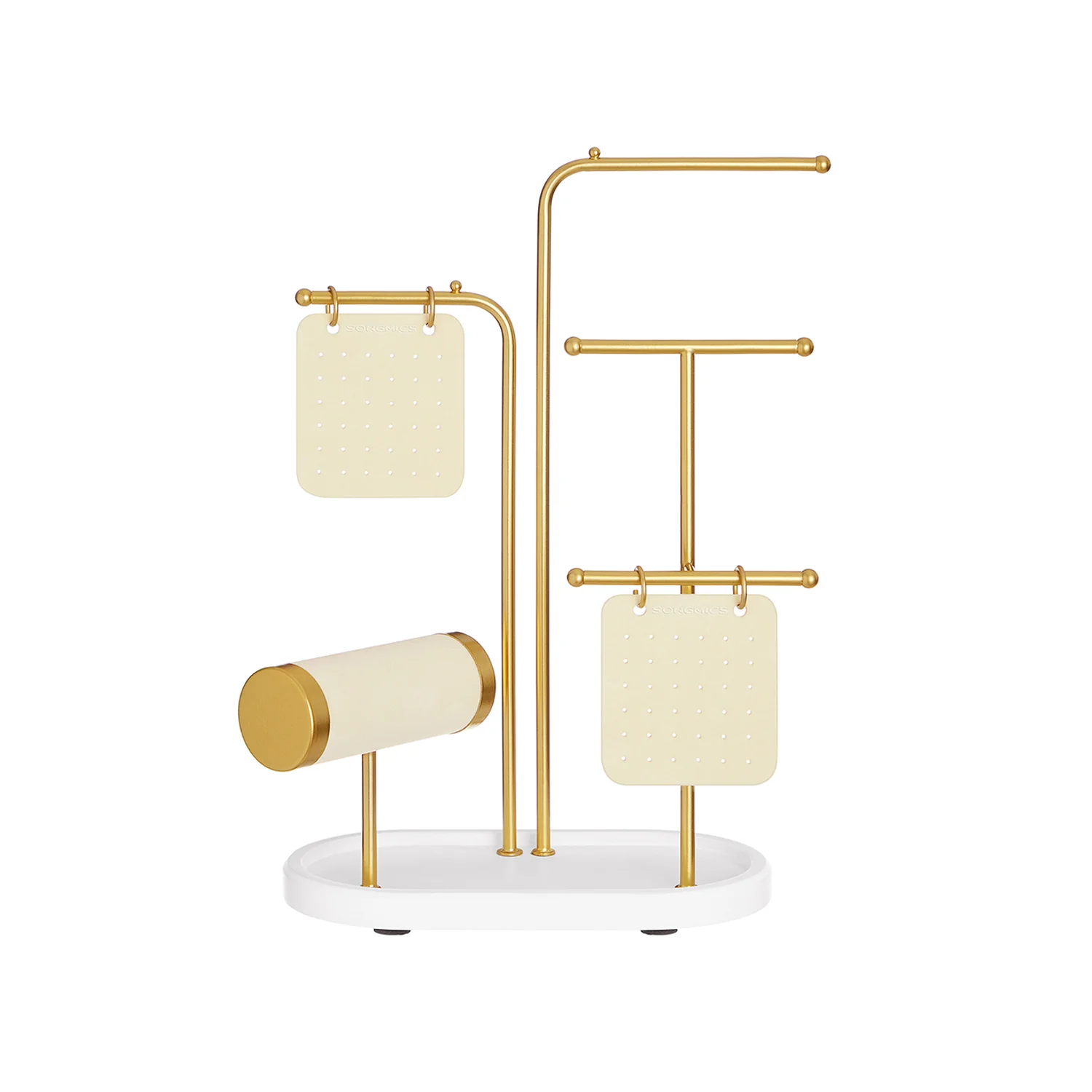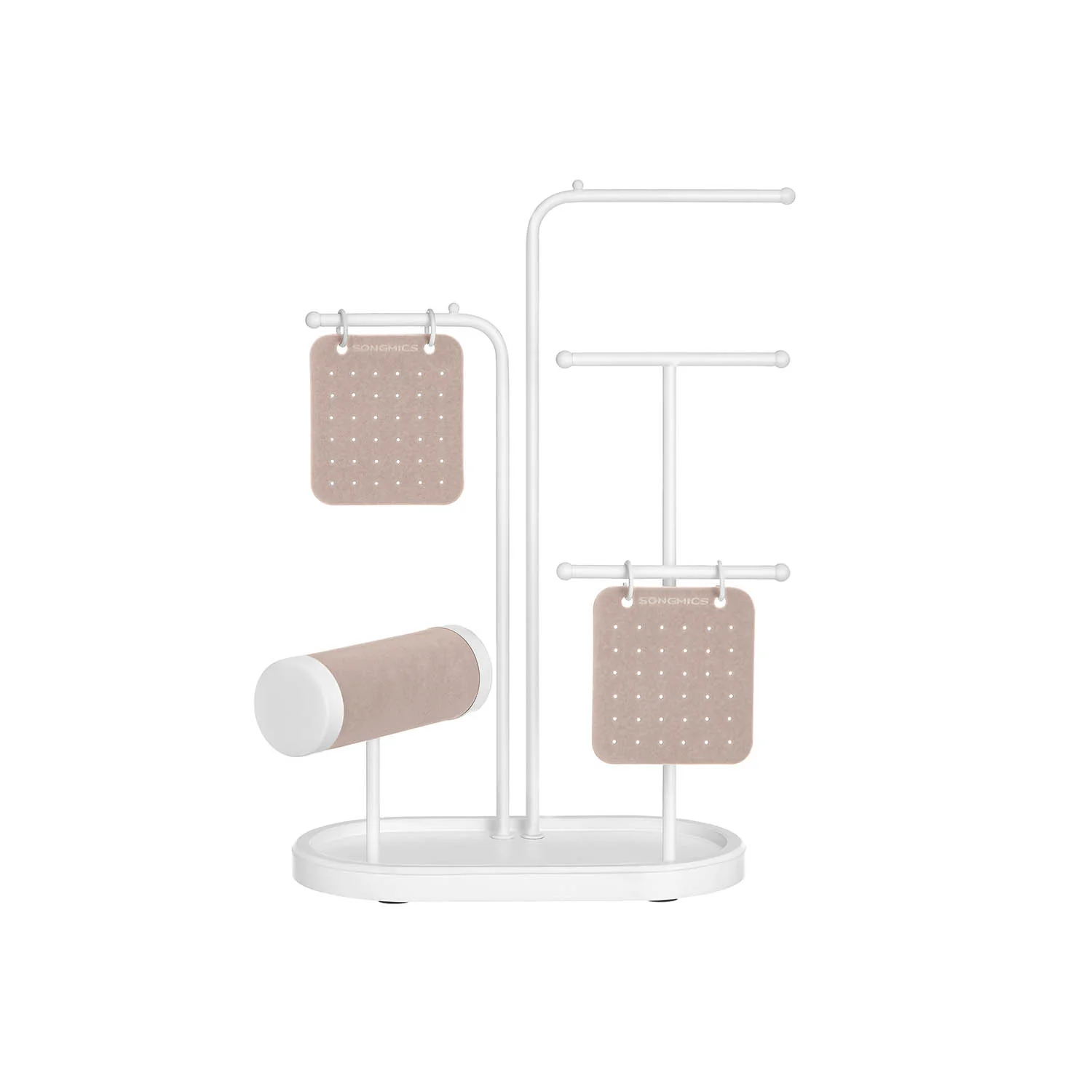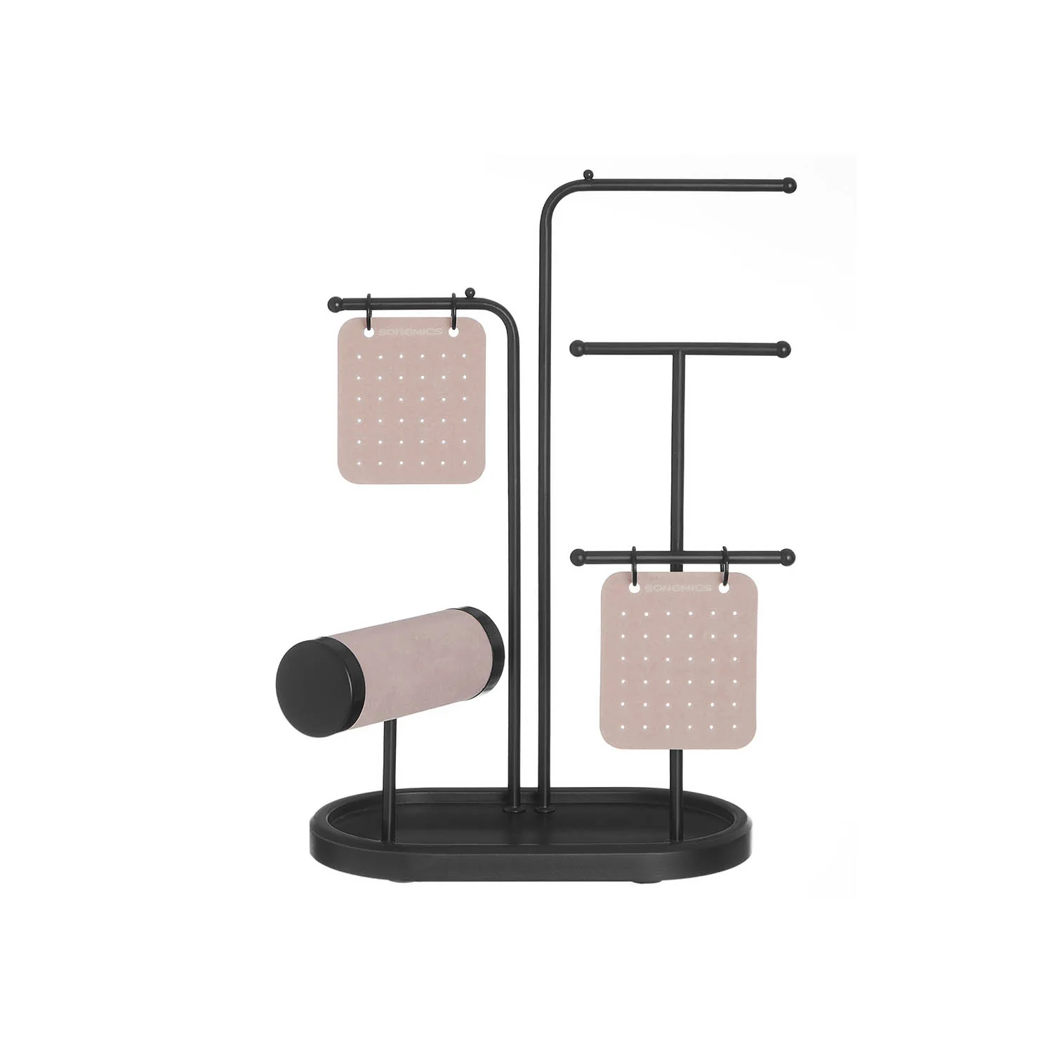 SONGMICS Soporte para Joya, Organizador de Joya, Expositor de Joya con Marco de Metal, 2 Tablas Pendientes, 4 Varillas de Colgar, para Collares Pendientes Pulseras Relojes